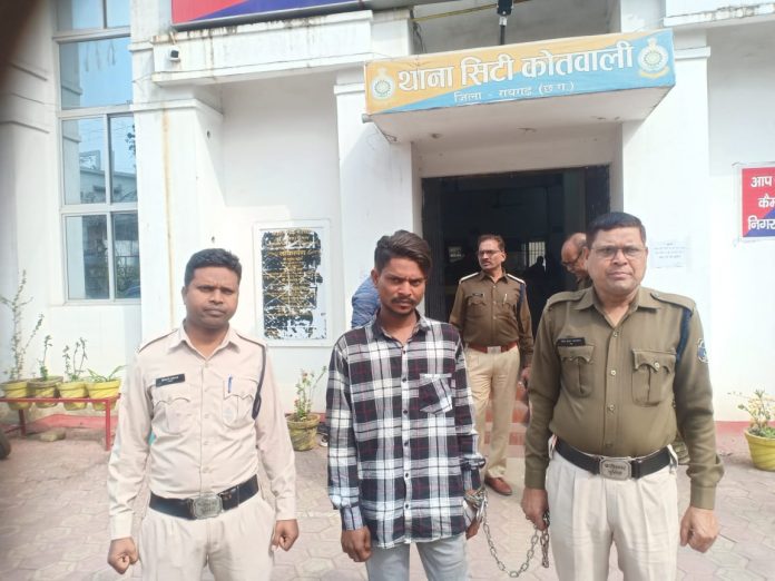 *रायगढ़* । कल 05 जनवरी के शाम कोतवाली पुलिस ने क्षेत्र के आदतन बदमाश *निरंजन दीप पिता महेश दीप उम्र 23 साल निवासी बापूनगर थाना कोतवाली रायगढ़* को लूटपाट के अपराध में गिरफ्तार कर जेल भेजा गया है । थाना कोतवाली में आरोपी निरंजन दीप के विरुद्ध 4 जनवरी को विरेन्द्र भोपे निवासी इंदिरा नगर गांधी रायगढ़ द्वारा रिपोर्ट दर्ज कराया गया कि इसकी रामभांठा मेन रोड राम मंदिर के पास किराना दुकान है, जहां 31 दिसंबर की रात निरंजन दीप दुकान आकर डरा धमकाकर ₹1500 लूट लिया । रिपोर्टकर्ता ने बताया कि निरंजन दीप चाकू पकड़ा रहता है और पहले भी दुकान में आकर डरा धमका कर रुपए ले गया था । वहीं थाना जूटमिल में भी 4 जनवरी को निरंजन दीप के विरुद्ध रामभांठा दुर्गा मंदिर चौक पर रहने वाले अरुण अजगले के द्वारा 3 जनवरी के शाम कयाघाट मुक्तिधाम के पास निरंजन दीप द्वारा चाकू दिखाकर ₹1000 लूटपाट की रिपोर्ट दर्ज कराया गया है । दोनों ही थानों में आरोपी निरंजन दीप के विरुद्ध लूट का अपराध पंजीबद्ध किया गया है । आरोपी निरंजन पर मिल रही शिकायत को गंभीरता से लेते हुए थाना प्रभारी कोतवाली निरीक्षक शनिप रात्रे द्वारा तत्काल स्टाफ के साथ आरोपी के सकुनत पर दबिश देकर आरोपी को हिरासत में लिया गया । आरोपी निरंजन दीप के मेमोरंडम पर ₹1000 और घटना में प्रयुक्त एक चाकू जप्त कर आरोपी को न्यायिक रिमांड पेश कर जेल भेजा गया है । बदमाश की पतासाजी, गिरफ्तारी में थाना प्रभारी कोतवाली निरीक्षक शनिप रात्रे, उप निरीक्षक दिनेश बोहिदार, प्रधान आरक्षक दिलीप भानु, आरक्षक गोविंद पटेल की अहम भूमिका रही है ।