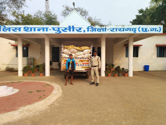 *रायगढ़* । सीमावर्ती जिलों एवं प्रदेश से अवैध धान की आवक को रोकने कलेक्टर श्री कार्तिकेया गोयल एवं वरिष्ठ पुलिस अधीक्षक श्री सदानंद कुमार के निर्देशन पर जिले के प्रमुख चेक पोस्ट, बेरियर पर सुरक्षा व्यवस्था लगायी गई है । साथ ही वरिष्ठ पुलिस अधीक्षक द्वारा सभी थाना प्रभारियों को सीमावर्ती जिलों एवं उड़ीसा/झारखंड से अवैध धान की आवक पर नजर रखने निर्देशित किया गया है । इसी क्रम में 09-10 जनवरी गस्त दौरान थाना प्रभारी पुसौर निरीक्षक सीताराम ध्रुव व उनके स्टाफ द्वारा नवापारा (अ) चौक पर वाहनों की जांच के दौरान उड़ीसा की ओर से आ रही बोलेरो पिकअप क्रमांक सीजी 12 ए0यु0- 0382 को चेक किया गया । वाहन अंदर 40 किलो क्षमता वाली प्लास्टिक 60 बोरी बोरियों में धान भरा हुआ रखा था । वाहन चालक विष्णु राठिया निवासी बर्रा पुलिस चौकी जोबी थाना खरसिया से वाहन में लोड धान के संबंध पूछताछ में कोई संतोषप्रद जवाब प्राप्त नहीं होने और उड़ीसा प्रांत से अवैध तरीके से परिवहन करना पाए जाने पर थाना पुसौर में धारा 102 सीआरपीसी के तहत कार्रवाई कर पुसौर टीआई द्वारा खाद्य अधिकारी, रायगढ़ को अग्रिम कार्रवाई हेतु सूचना दिया गया है ।