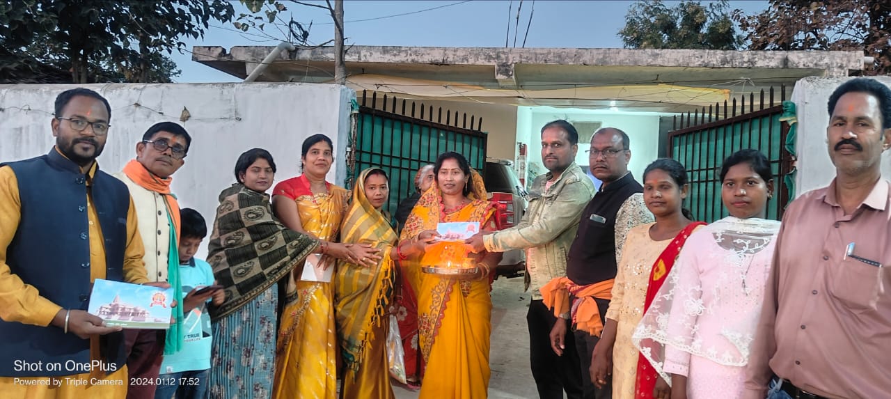 अक्षत कलश के साथ निमंत्रण देने में बोधराम प्रधान,दीपक सिदार,बंटी टोनी दादरीवाल,नीरज मित्तल,भूकंप महंत, मुन्ना कौशिक, अवधराम पटेल,अंजू दास महंत, रीना भगत, पूनम कौशिक, संध्या महंत,एवं वार्डवासी उपस्थित रहे।