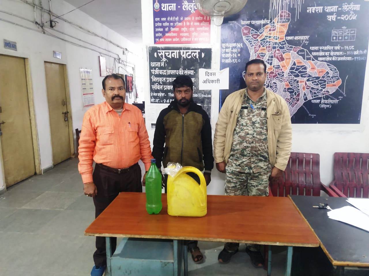 *रायगढ़* । कल दिनांक 13/01/2024 को थाना लैलूंगा क्षेत्र अंतर्गत ग्राम भेडीमुडा (ब) में नेतराम साहू द्वारा अवैध रूप से महुआ शराब बनाकर बेचने की सूचना पर थाना प्रभारी लैलूंगा निरीक्षक मोहन भारद्वाज, सहायक उप निरीक्षक सुरेन्द्र वर्मा, प्रधान आरक्षक जयशरण चन्द्रा, आरक्षक हेलारियुस तिर्की, एलियस केरकेट्ट, महिला आरक्षक अनिरा लकड़ा के साथ जाकर कार्रवाई किया गया । थाना प्रभारी द्वारा गवाहों के साथ संदेही नेतराम साहू के घर दबिश देकर संदेही से अवैध शराब बिक्री के संबंध में पूछताछ करने पर संदेही महुआ शराब बेचना स्वीकार किया जिसके कब्जे से 05 लीटर क्षमता वाली जरीकेन और 02 लीटर क्षमता वाली प्लास्टिक बाटल में भरा कुल 07 लीटर अवैध महुआ शराब को जप्त कर कब्जा पुलिस लिया गया । साथ ही महुआ शराब तैयार करने रखे महुआ लाहन का मौके पर नष्टीकरण किया गया है । थाना लैलूंगा में आरोपी नेतराम साहू पिता बुद्धू राम साहू उम्र 26 वर्ष साकिन ग्राम भेडीमुडा (ब) थाना लैलूंगा जिला रायगढ़ पर आबकारी एक्ट की धारा 34(2),59(क) के तहत कार्रवाई किया गया है ।