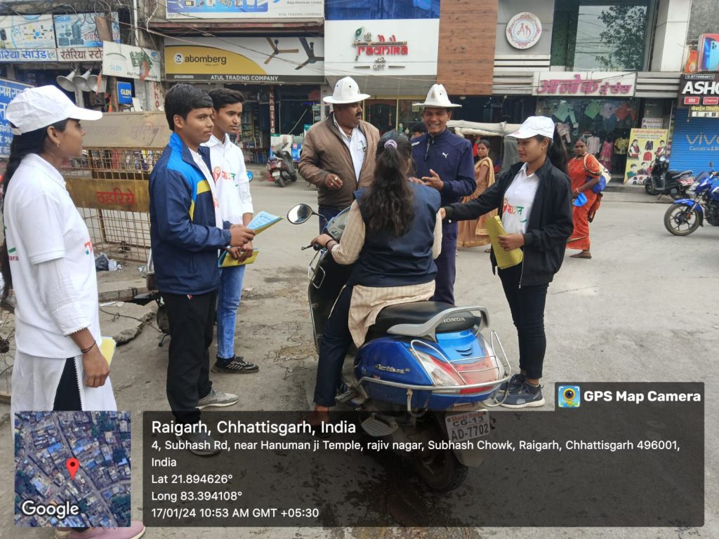 *रायगढ़* । आज दिनांक 17.01.2024 को राष्ट्रीय सड़क सुरक्षा माह 2024 के तीसरे दिन यातायात पुलिस रायगढ़ द्वारा विविध जागरूकता कार्यक्रम आयोजित किये गये । शहर के नटवर अंग्रेजी मीडियम स्कूल में ट्रैफिक डीएसपी श्री रमेश चन्द्रा द्वारा छात्र-छात्राओं को यातायात के बेसिक नियमों की जानकारी देकर नियमों का पालन करने कहा गया । उन्होंने यातायात नियमों का हमेशा पालन करने, बिना लाइसेंस के वाहन ना चलाने एवं छात्र-छात्राओं को यातायात के सांकेतिक चिन्हों के उपयोग के तरीके बताकर दुर्घटना से बचने की जानकारी दिया गया । इसी क्रम में कॉलेजों में अध्यनरत नेहरू युवा सेवा संगठन केंद्र रायगढ़ के युवाओं को सुरक्षित यातायात का पाठ पढ़ाया गया एवं उनके माध्यम से आम जनता को यातायात नियमों का पालन करने विनम्र अपील के साथ प्रचार प्रसार किया गया । वहीं सड़क सुरक्षा को लेकर यातायात पुलिस द्वारा हादसों में कमी लाने रोटरी क्लब रायगढ़ ग्रेटर द्वारा यातायात विभाग को प्रदत्त संकेत बोर्ड को दुर्घटना जन्य स्थल में स्थापित किया गया एवं नो पार्किंग जोन में लगाया गया है ।