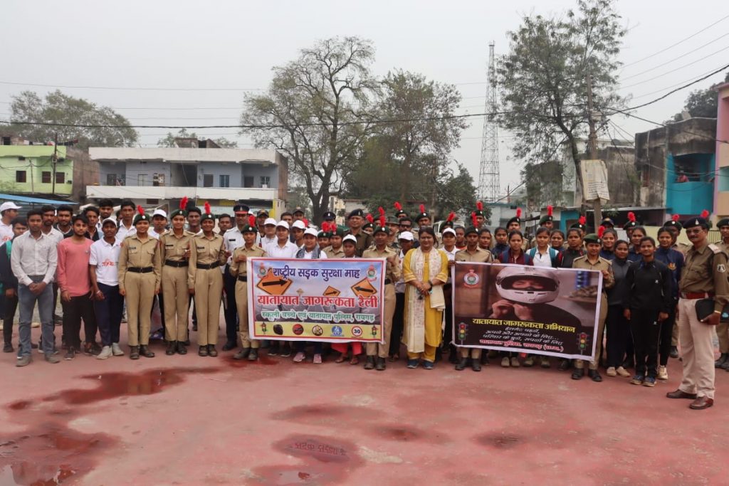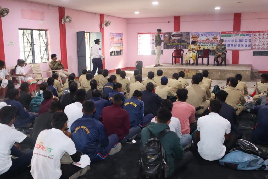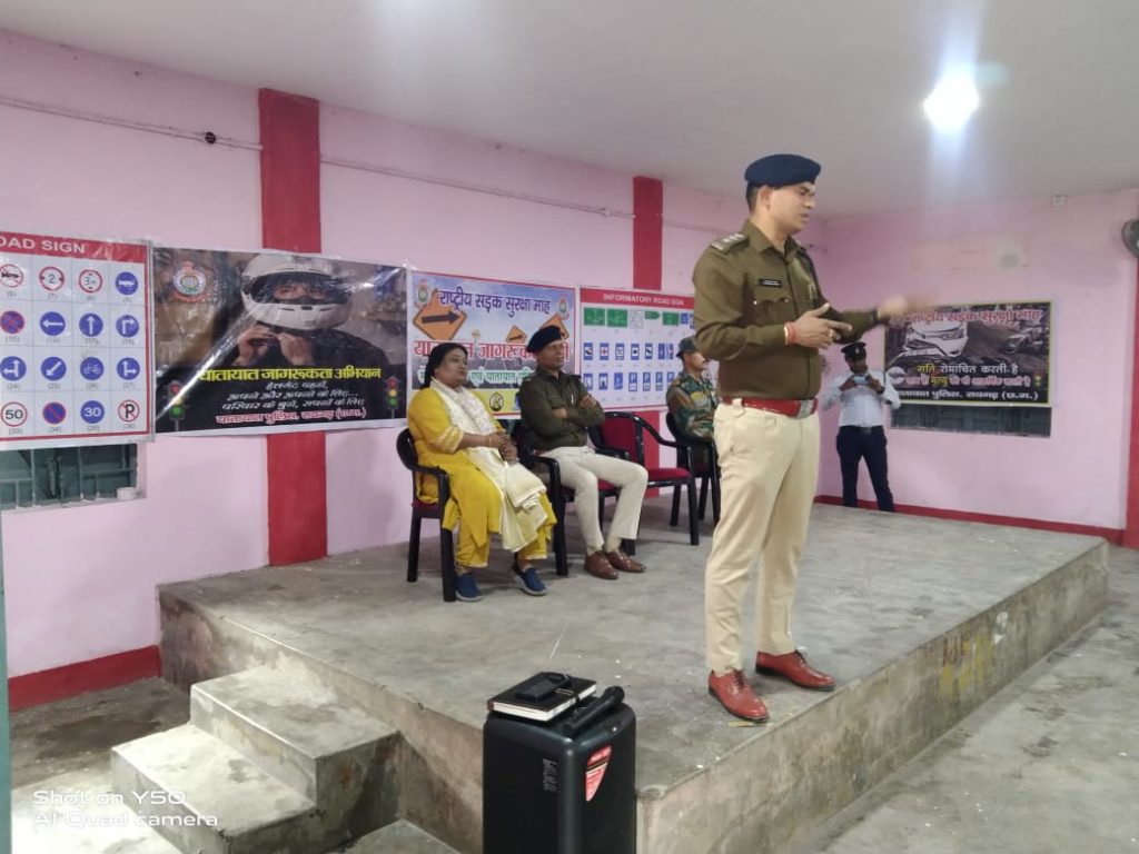● जागरूकता के साथ कार्यवाही : शराब पीकर वाहन चलाने वाले वाहन चालकों और बिना लायसेंसी ड्रायवर को वाहन चलाने देने वाले वाहन स्वामी को न्यायालय से अर्थदंड…… *रायगढ़* । आज दिनांक 18.01.2024 को राष्ट्रीय सड़क सुरक्षा माह 2024 के चौथे दिन यातायात पुलिस रायगढ़ द्वारा विविध जागरूकता कार्यक्रम आयोजित किया गया । स्थानीय पुलिस सामुदायिक भवन में ट्रैफिक डीएसपी श्री रमेश कुमार चन्द्रा द्वारा स्काउट गाइड, एससीसी, एनएसएस और नेहरू युवा संगठन के बच्चों को यातायात नियमों की बेसिक जानकारी देकर तेज गति से वाहन ना चलाने, गाड़ी चलाते समय फोन पर बात ना करने, सीट बेल्ट लगाने, ड्राइविंग लाइसेंस हमेशा साथ रखने और टू व्हीलर चलाते समय हेलमेट जरूर पहनने कहा गया । उन्होंने दुर्घटना घटित होने के कारण एवं रोकथाम के संबंध में विस्तार से जानकारी देकर ट्रैफिक वार्डन के कार्य और गुड सेमेटेरियन के बारे में बताया गया । कार्यक्रम में डीएसपी रमेश कुमार चंद्रा, थाना प्रभारी यातायात निरीक्षक रोहित बंजारे, एनसीसी मास्टर ट्रेनर शारदा गोगरे, एनसीसी सूबेदार बलविंदर, थाना यातायात के सहायक उप निरीक्षक दौलत सिंह ठाकुर, प्रधान आरक्षक मुकेश चौहान एवं थाना यातायात के अन्य स्टाफ द्वारा कार्यक्रम में सम्मिलित हुए बच्चों को टेक्निकल एवं फिजिकल रूप से यातायात को समझाया गया । यातायात पुलिस ने कार्यक्रम में सम्मिलित हुए किशोर बालकों को ट्रैफिक वार्डन के रूप में विकसित कर आम जनता एवं वाहन चालकों को यातायात नियम का पालन करने यातायात की महत्व का प्रचार प्रसार करने हेतु प्रेरित किया गया । कार्यक्रम में सभी ने यातायात नियमों का पालन करने के साथ राष्ट्रीय सड़क सुरक्षा माह को सार्थक एवं सफल बनाने टीम भावना से एकजुट होकर काम करने की शपथ ली गई । वहीं सहायक उप निरीक्षक प्रेम साय भगत के साथ यातायात पुलिस द्वारा कार्मल स्कूल में छात्राओं को यातायात नियमों की जानकारी देकर जागरूक किया गया ।