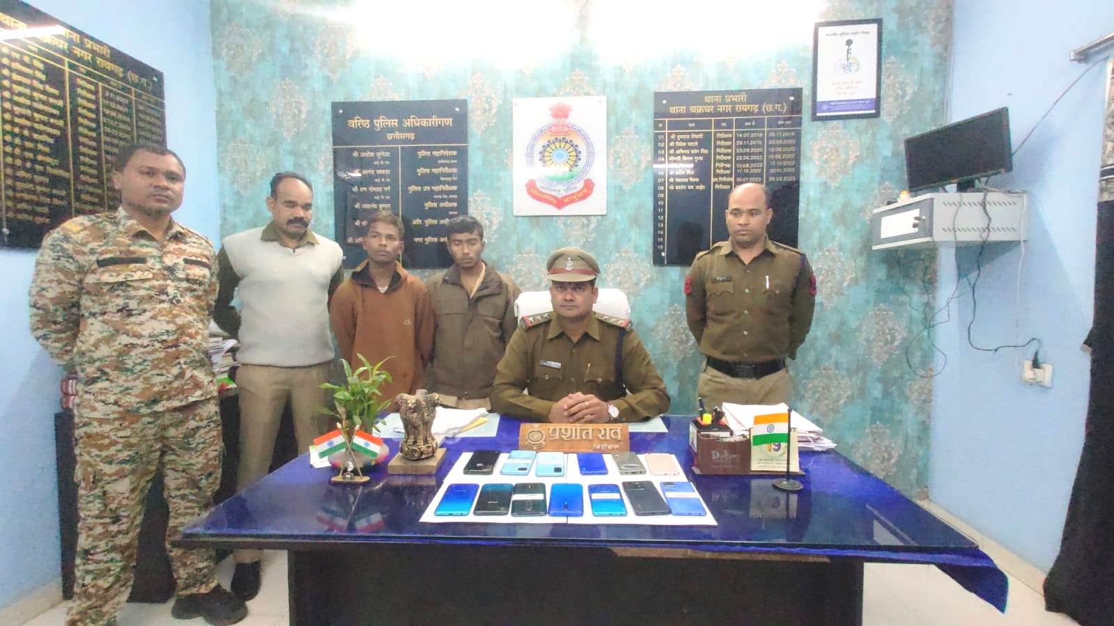 *रायगढ़* । संपत्ति संबंधी अपराधों में अंकुश लगाने एसएसपी श्री सदानंद कुमार के निर्देशन पर माल मुल्जिम की पतासाजी को लेकर थाना प्रभारी चक्रधरनगर निरीक्षक प्रशांत राव आहेर द्वारा क्षेत्र में मुखबीरों को सक्रिय कर सूचनाएं ली जा रही है । इसी क्रम में आज 19 जनवरी के सुबह थाना प्रभारी चक्रधरनगर को उनके सक्रिय मुखबीर ने छोटे अतरमुड़ा के संजू चक्रवर्ती और दीपक महंत नाम के पास काफी संख्या में चोरी के मोबाइल रखे होने की सूचना दिया, दोनों लड़के ने चोरी के मोबाइलों को सेकंड हैंड में बिक्री के लिए कुछ लोगों से चर्चा किए थे । थाना प्रभारी द्वारा थाने से प्रधान आरक्षक हेम प्रकाश सोन के हमराह स्टाफ को तस्दीक और कार्यवाही के लिए तत्काल रवाना किया गया । चक्रधरनगर पुलिस की टीम द्वारा दोनों संदेहियों को हिरासत में लेकर मोबाइलों बिक्री करने के संबंध में कड़ी पूछताछ किया गया जिसमें वे चक्रधरनगर, टीवीटावर, छोटे अतरमुड़ा क्षेत्र में घरों से मोबाइलों की चोरी कर घर पर छुपा कर रखना बताए । पुलिस ने गवाहों के समक्ष दोनों संदेही संजू चक्रवर्ती और कबीर दास महंत के घर से *13 चोरी की मोबाइल बरामद* किया गया है । आरोपियों से जप्त मोबाइल की बाजार कीमत करीब ₹65,000 है । दोनों आरोपियों पर थाना चक्रधरनगर में धारा 41(1+4)CrPC/379 IPC की कार्यवाही कर कोर्ट पेश किया गया । आरोपी कबीर दास पिता स्वर्गीय संतोष महंत उम्र 19 साल अभिनव स्कूल के पास छोटे अतरमुड़ा पूर्व में भी चोरी के चोरी की अपराध में शामिल रहा है और आरोपी संजू चक्रवर्ती पिता दीपक चक्रवर्ती उम्र 20 साल जिला पंचायत के पीछे छोटे अतरमुड़ा को वर्ष 2022 में चक्रधरनगर पुलिस द्वारा मारपीट के अपराध में चालान किया गया है । आरोपियों की पतासाजी, गिरफ्तारी में थाना प्रभारी चक्रधरनगर निरीक्षक प्रशांत राव आहेर, प्रधान आरक्षक हेम प्रकाश सोन, रवि साय, आरक्षक मनिकेतन पटेल, अभय यादव, शांति मिरी, रंजीत भगत की विशेष भूमिका रही है ।