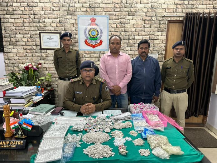 रायगढ़* । कल 27.01.2024 की रात्रि थाना प्रभारी कोतवाली निरीक्षक शनिप रात्रे को मुखबीर से सूचना मिली कि ओडिशा से एक व्यक्ति ऑल्टो कार से बिना पक्के बिल के चांदी के आभूषण अवैध तरीके से खपाने रायगढ़ लेकर आ रहा है । सूचना पर थाना प्रभारी द्वारा तत्काल थाने से प्रधान आरक्षक जगदीश नायक के हमराह स्टाफ को संदिग्ध ऑल्टो कार पर कार्रवाई के लिए रवाना किया गया । कोतवाली पुलिस की टीम द्वारा रात्रि पेट्रोलिंग दौरान पुराना शनि मंदिर ओवर ब्रिज के पास संदिग्ध ओड़िशा पासिंग *ऑल्टो कार OR 17 J 9876* को रोक कर चेक किया गया जिसमें भारी मात्रा में चांदी के नए आभूषण- चांदी का चूड़ा, अंगूठी, पायल, ब्रेसलेट, सिंदूर डिब्बी रखे हुए थे । कोतवाली पुलिस टीम द्वारा वाहन में मौजूद व्यक्ति से पूछताछ करने पर अपना *जुगल प्रधान निवासी बरगढ़ उड़ीसा* का रहने वाला बताया जिससे वाहन में रखे चांदी के नए आभूषणों के कागजात पेश करने नोटिस दिया गया । जुगल प्रधान चांदी के आभूषणों का कोई रसीद नहीं होना बताया । थाना प्रभारी कोतवाली के निर्देशन पर अनावेदक जुगल प्रधान पिता स्वर्गीय गणेश प्रधान उम्र 44 साल निवासी वार्ड नंबर 03 हाटपदा थाना व जिला बरगढ़ (उड़ीसा) को वाहन एवं चांदी के आभूषण समेत थाना लाया गया। अनावेदक से संदिग्ध *चांदी के आभूषण कुल वजन 11 किलो कीमत करीब 6 लाख रुपए* का धारा 102 CrPC के तहत कार्रवाई कर जप्त किया गया । कार्यवाही में थाना प्रभारी कोतवाली निरीक्षक शनिप रात्रे, प्रधान आरक्षक जगदीश नायक, आरक्षक जगमोहन ओग्रे, मनोज पटनायक, भगवती प्रसाद रत्नाकर शामिल थे ।