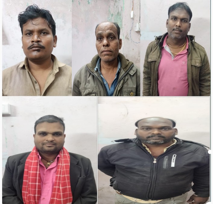 ● जुआरियों से ₹26,000 जप्त…. *रायगढ़* । वरिष्ठ पुलिस अधीक्षक श्री सदानंद कुमार के दिशा निर्देशन एवं एसडीओपी खरसिया श्री प्रभात पटेल के मार्गदर्शन पर कल दिनांक 28/01/2024 के शाम थाना खरसिया और चौकी खरसिया पुलिस की संयुक्त टीम द्वारा ग्राम अंजोरीपाली नहरपार मेन रोड किनारे जुआ की सूचना पर रेड कार्यवाही कर 5 जुआरियों को पकड़ा गया है । पुलिस को सूचना मिली थी कि नहरपार मेन रोड पर आसपास गांव के लोग इकट्ठे होकर काट पत्ती नामक जुआ खेलते हैं, आज शाम भी कुछ लोगों को जुआ खेलते देखा गया है । एसडीओपी खरसिया श्री प्रभात पटेल के मार्गदर्शन पर थाना खरसिया और चौकी खरसिया की संयुक्त टीम बनाकर जुआ रेड कार्यवाही किया गया । जहां दो जुआ फड से पुलिस ने गंगाधर राठौर, राजेश्वर उर्फ राजेश राठौर, कन्हैया राठौर, सुरेश टंडन, अच्छे दास महंत को जुआ खेलते पकड़ा जिनके पास और जुआ फाड़ से 26,000 रुपए नगद और दो ताश की गड्डी और प्लास्टिक बोरी (बिछौना) जप्त कर आरोपियों पर चौकी खरसिया (थाना खरसिया) में छत्तीसगढ़ जुआ प्रतिषेध अधिनियम 2022 की धारा 3 (2) के तहत कार्यवाही किया गया है । जुआ रेड कार्यवाही में थाना प्रभारी खरसिया निरीक्षक त्रिनाथ त्रिपाठी, चौकी प्रभारी खरसिया निरीक्षक सौरभ द्विवेदी, सहायक उप निरीक्षक पृथ्वीराज मोहंती, प्रधान आरक्षक शंकर सिंह क्षत्री, आरक्षक विशोप सिंह, प्रदीप तिवारी, साविल चन्द्रा, मुकेश यादव, सिदार सिंह शामिल थे ।