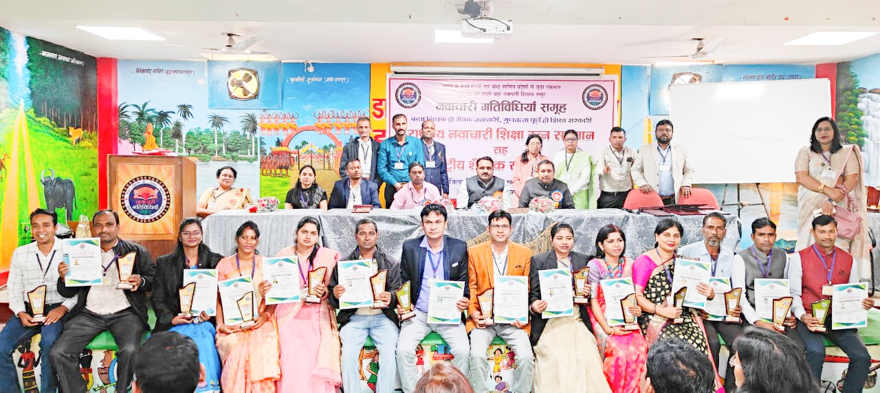 लैलूंगा :- देश के सभी राज्यों एवं केन्द्र शासित प्रदेशों से जुड़ा एक मात्र एवं सबसे बड़ा स्व-प्रेरित नवाचारी शिक्षक संगठन नवाचारी गतिविधि समूह भारत के द्वारा द्वारा छ्त्तीसगढ़ राज्य के लिए राष्ट्रीय नवाचारी शिक्षा रत्न सम्मान सह शैक्षिक समीट का आयोजन जिला शिक्षा एवं प्रशिक्षण संस्थान रायपुर छत्तीसगढ़ में 28 जनवरी 2024 को किया गया था ।जिसमें संपूर्ण छ्त्तीसगढ़ राज्य से लगभग 150 शिक्षक – शिक्षिकाओं को उनके उत्कृष्ठ कार्य के लिए सम्मानित किया गया । उपरोक्त राज्य स्तरीय कार्यक्रम में नवाचारी शैक्षिक गतिविधियों के सफल संचालन व क्रियान्वयन हेतु रायगढ़ जिले के विकास खण्ड रायगढ़ से सुशीला साहू, विकास खण्ड खरसिया से भुवनेश्वरी मंथन, विकास खण्ड घरघोड़ा से पवित्रा सिदार, विकास खण्ड लैलूंगा से नरेश कुमार गुप्ता, विकास खण्ड पुसौर से रुद्र प्रसाद शर्मा तथा श्रीमती आरती साहू, विकास खण्ड धरमजयगढ़ से भास्कर प्रसाद पटेल, विकास खण्ड तमनार से सुभीता नायक को प्रमाण पत्र, स्मृति चिन्ह एवं कलम भेंट कर सम्मानित किया गया । इस गरिमामयी कार्यक्रम में अतिथि के रूप में राज्य परियोजना कार्यालय से सहायक संचालक डॉ. एम. सुधीश, जिला शिक्षा अधिकारी हिमांशु भारती, रायपुर जिला डी.एम.सी./ डी. एस. पटले, जिला शिक्षा एवं प्रशिक्षण संस्थान रायपुर से डॉ. एस. के. जैन, एल. के. वर्मा एवं डॉ. नवनीता सिंह उपस्थित रहे । कार्यक्रम के सफल आयोजन में नवाचारी गतिविधि समूह के छत्तीसगढ़ टीम के शिक्षकों सतत् सहयोग प्राप्त हुआ । जो नि:स्वार्थ भाव से पिछले 7-8 वर्षों से समूह के उद्देश्य के अनुसार कार्य किया जा रहा है ।