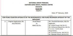 साहिबगंज। जिले के चर्चित सामाजिक कार्यकर्ता सह पर्यावरण प्रेमी सैयद अरशद नसर द्वारा गंगा नदी को प्रदुषण से बचाने,जलीय जीव-जंतु,डॉल्फिन के संरक्षण व संवर्धन हेतु एनजीटी ईस्टर्न जोन कोलकाता में दायर याचिका संख्या-162 /2023 की सुनवाई आज पीठ के जुडिशियल मेंबर न्यायमूर्ति बी. अमित स्टालेकर व एक्सपर्ट मेंबर डॉ अरुण कुमार वर्मा करेगी. सुनवाई में भाग लेने याचिकाकर्ता अरशद नसर कोलकाता पहुँच गए हैं.अरशद ने एनजीटी में याचिका दायर करते हुए गुहार लगाया है की मेसर्स मां तारा कंस्ट्रक्शन कंपनी मुजफ्फरपुर व मेसर्स जी.के इंटरप्राइजेज मालदा द्वारा सरकारी पदाधिकारियों के साथ तालमेल कर नियम कानून का खुला उलंधन कर झारखण्ड राज्य के एकमात्र साहिबगंज जिला से गुजरने वाली गंगा नदी से स्टोन बोल्डर बिहार के कटिहार जिले में बहुत ही बड़े पैमाने पर भेजा गया है जिससे गंगा नदी प्रदुषित हुआ है व जलीय जीव-जंतु संरक्षित डॉल्फिन को भारी नुकसान पहुंचा है.जिसको लेकर कड़ी कार्रवाई की मांग अरशद ने एनजीटी से की है.इस मामले में नमामि गंगा क्लीन मिशन भारत सरकार के डायरेक्टर,राज्य के खान सचिव,खान निदेशक,जिले के उपायुक्त,डीटीओ व कटिहार जिले के बाढ़ नियंत्रण प्रमंडल के कार्यपालक अभियंता व स्टोन बोल्डर सप्लायर को जवाबी हलफनामा दाखिल करने का आदेश एनजीटी ने दिया है साथ ही जिले के डीसी के नेतृत्व में तीन सदस्यीय गठित कमिटी जिसमें केंद्रीय प्रदुषण बोर्ड दिल्ली व झारखंड राज्य प्रदुषण बोर्ड के वरिष्ठ वैज्ञानिक रहेंगे को स्थलीय जांच कर रिपोर्ट एनजीटी में सौंपनी है.आज की सुनवाई पर सभी की नजरें टिकी हुई है.