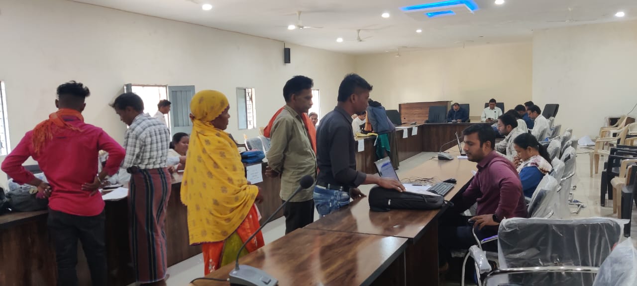घरघोड़ा एसडीएम कार्यालय परिसर के सभागार भवन में एसडीएम रमेश मोर के मार्गदर्शन में तहसीलदार विकास जिंदल नायब तहसीलदार सहोदर राम व आर आई पटवारियों की उपस्थिति में जनसमस्या निवारण शिविर चल रहा है जिसमे घरघोड़ा क्षेत्र के ग्रामीण अपनी समस्याओं को लेकर आ रहे है । एसडीएम के मार्गदर्शन तहसीलदार नायब तहसीलदार के नेतृत्व में पटवारियों द्वारा पीड़ितों की सम्भव मदद की जा रही है