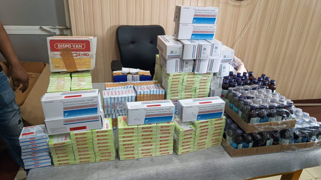 जप्ती– नशीली दवा एस.पी. ट्रेमाडोल -2321 नग, नशीली ब्युट्रम एम्युगुल – 1620 नग, नशीली दवा एलप्रेक्स – 3750 नग, नशली दवा नाईट्राजेपाम-1300 नग, कुल बाजार मूल्य 13 लाख 48 हजार 650 रूपये ।