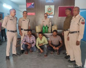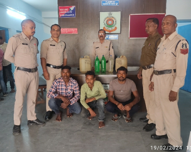 *रायगढ़* । अवैध शराब पर कार्यवाही के क्रम में दिनांक 18/02/2024 को कोतरारोड़ पुलिस की टीम द्वारा ग्राम तारापुर माण्ड नदी के पास अवैध शराब बिक्री की शिकायत पर टीआई राकेश मिश्रा के नेतृत्व में कोतरारोड़ पुलिस द्वारा शराब रेड कार्यवाही किया गया । जहां (1) सहनू निषाद पिता दुलीचंद निषाद उम्र 32 वर्ष निवासी तारापुर थाना कोतरारोड़ के कब्जे से 6 लीटर महुआ शराब (2) राकेश निषाद पिता फते सिंह निषाद उम्र 29 वर्ष साकिन तारापुर के कब्जे से 8 लीटर महुआ शराब जप्त किया गया है । वहीं ग्राम धनागर के उरांव पारा में शराब बिक्री करते अशोक उरांव पिता फूल सिंह उरांव उम्र 21 वर्ष निवासी धनागर, उरांव पारा थाना कोतरारोड़ को पकड़ा गया जिसके कब्जे से 7 लीटर महुआ शराब की जप्ती की गई है । इस प्रकार तीन अलग-अलग कार्यवाही में 21 लीटर महुआ शराब के साथ पकड़े गये आरोपियों पर थाना कोतरारोड़ में पृथक-पृथक धारा धारा 34(2) 59 (क) आबकारी एक्ट के तहत कार्यवाही किया गया है । शराब रेड कार्यवाही में निरीक्षक राकेश मिश्रा, सहायक उप निरीक्षक हेमसागर पटेल, प्रधान आरक्षक शंकर राम कालो, शम्भू खैरवार, आरक्षक चंद्रेश पांडेय, संजीव पटेल, मनोज जोल्हे और महिला आरक्षक किशोरी चौहान शामिल थे ।