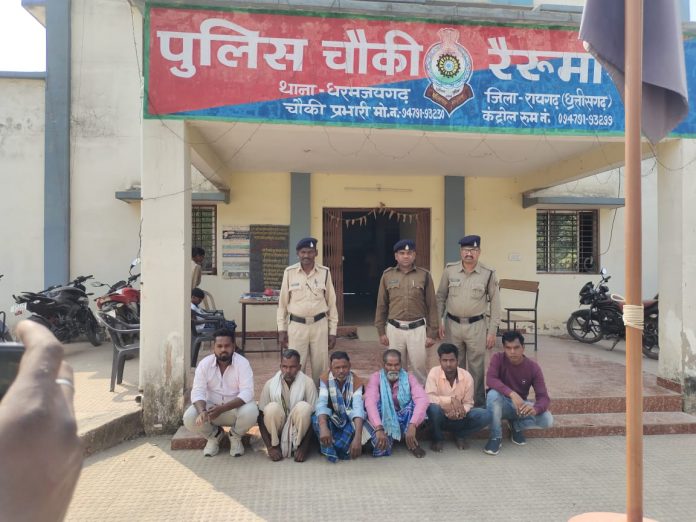 *रायगढ़* । जिले के धरमजयगढ़, रैरूमाखुर्द, लैलूंगा, तमनार क्षेत्र से मवेशियों की तस्करी का अंदेशा बना रहता है जिसे लेकर पुलिस अधीक्षक श्री दिव्यांग कुमार पटेल के दिशा निर्देशन एवं अतिरिक्त पुलिस अधीक्षक श्री संजय महादेवा व पुलिस अनुविभागीय अधिकारी धरमजयगढ़ श्री दीपक मिश्रा के मार्गदर्शन पर पुलिस टीमें मवेशी तस्करी पर अंकुश लगाने मुखबीरों को सक्रिय कर निगाह रखे हुए है । इसी कड़ी में कल 19 फरवरी के शाम चौकी प्रभारी रैरूमाखुर्द उप निरीक्षक ऐनु कुमार देवांगन को मुखबिर को सूचना मिला कि चार व्यक्ति कृषक मवेशियों को जोड़ों में बांधकर बेरहमी पूर्वक मारते-पीटते बगैर चारा पानी के पैदल चरखा पारा से बरपाली जंगल होते हांडीपानी की ओर जा रहे हैं । तत्काल चौकी प्रभारी अपने स्टाफ के साथ तस्दीक कार्यवाही के लिए रवाना हुए । पुलिस की टीम द्वारा बाकारूमा जंगल रोड में 6 मवेशी तस्करों को पकड़ा गया । मवेशी को हांकते मिले 04 तस्करों से नाम पूछताछ करने पर अपना नाम सुकरू लकड़ा, जगन्नाथ, रामेश्वर यादव, चिंताराम यादव बताये और उनके दो साथी निरंजन राठिया और विक्की सारथी को पीछे सड़क किनारे होना बताये जिनके कब्जे से 37 नग कृषक मवेशियों को जप्त किया जिनके दो साथियों को भी पुलिस टीम द्वारा हिरासत में लिया गया । पुलिस टीम द्वारा तस्करों से मवेशियों के खरीदी-बिक्री का मालिकाना हक प्रमाण पत्र प्रस्तुत करने कहा गया जिसमें वे कोई प्रमाण पत्र प्रस्तुत नहीं कर पाये । जब्त 37 मवेशियों का वर्तमान मूल्य करीब 120000 रुपए बताया जा रहा है तथा आरोपियों से नगदी रकम 2300 रुपए तथा तीन मोबाइल बरामद कर जप्त किया गया है । मवेशी तस्कर आरोपी - (1) सुकरू लकड़ा पिता लक्ष्मण लकड़ा 50 साल निवासी तोलमा (2) जगन्नाथ पिता बुधराम उम्र 55 साल निवासी किलकिला हांडीपानी (3) रामेश्वर यादव पिता जेठू राम यादव उम्र 30 साल निवासी धौंराभाठा (4) चिंताराम यादव पिता सदाराम यादव उम्र 54 वर्ष निवासी चरखापारा (5) निरंजन राठिया पिता स्व. शिवनारायण 35 वर्ष निवासी चरखापारा (6) विक्की सारथी पिता स्व. सुनील सारथी 30 साल निवासी बाकारूमा चौकी रैरूमाखुर्द थाना धरमजयगढ़ के विरूद्ध पुलिस चौकी रैरूमाखुर्द (थाना धरमजयगढ़) में आरोपियों पर छत्तीसगढ़ कृषक पशु परिरक्षण अधिनियम 2004 की धारा 4, 6, 10 के तहत अपराध पंजीबद्ध कर आरोपियों को गिरफ्तार कर न्यायिक रिमांड पर भेजा गया है । संपूर्ण कार्यवाही में चौकी प्रभारी उपनिरीक्षक ऐनु कुमार देवांगन, आरक्षक जॉन टोप्पो, तुलसी नाग, भेक लाल सिदार, प्रमोद भगत, जयचंद भगत की विशेष भूमिका रही है ।