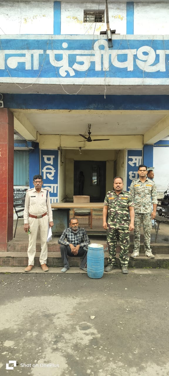 *रायगढ़* । कल दिनांक 24/02/2024 के शाम थाना प्रभारी पूंजीपथरा निरीक्षक त्रिनाथ त्रिपाठी को मुखबिर से सूचना मिली कि एक व्यक्ति ग्राम गेरवारी सलासर प्लांट चौक के सामने अवैध रूप से प्लास्टिक पन्नी में 250-250 ml महुआ शराब का पाऊच बनाकर बिक्री कर रहा है । थाना प्रभारी के निर्देशन पर तत्काल मौके पर पहुंच कर पूंजीपथरा की टीम द्वारा शराब बेच रहे *आरोपी अशोक चौधरी पिता राम चन्दर उम्र 65 वर्ष साकिन ग्राम बुधवा थाना हुसैनाबाद जिला पलामू (झारखण्ड) हाल मुकाम सलासर प्लांट गेरवानी झुग्गी बस्ती* के कब्जे से 100 नग महुआ शराब की पाऊच जिसमें प्रत्येक में 250-250 ml महुआ शराब भरा है, *जुमला 25 लीटर अवैध महुआ शराब किमती 2500 रूपये* को गवाहों के समक्ष जप्त कर आरोपी अशोक चौधरी पर थाना पूंजीपथरा में धारा 34(2), 59(क) आबकारी एक्ट के तहत कार्यवाही किया गया है । थाना प्रभारी पूंजीपथरा निरीक्षक त्रिनाथ त्रिपाठी के निर्देशन पर शराब रेड कार्यवाही में सहायक उप निरीक्षक चंदन नेताम, प्रधान आरक्षक विनीत तिर्की और नरेंद्र पैंकरा शामिल थे ।