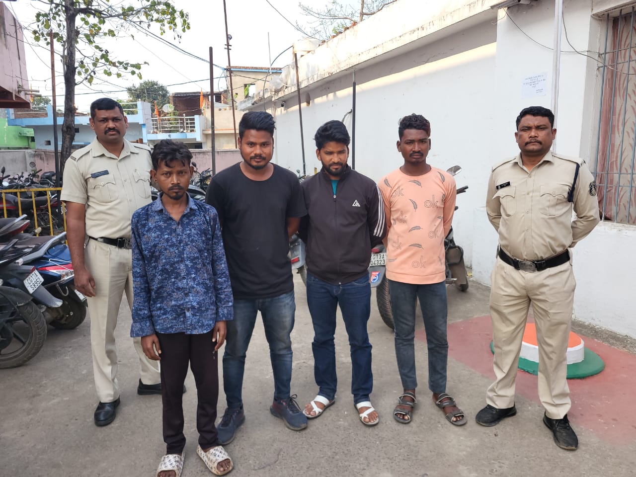 *रायगढ़* । कल दिनांक 25.02.2024 को जुआ पर कार्रवाई को लेकर मुखबीरों से सूचना प्राप्त कर जूटमिल पुलिस एवं साइबर सेल के स्टाफ द्वारा ग्राम जामटिकरा में रोड़ किनारे स्टाईगर से जुआ खिलाते 04 जुआरियों को पकड़ा गया है । थाना प्रभारी जूटमिल निरीक्षक मोहन भारद्वाज को मुखबीर से सूचना मिली थी कि वासु रेस्टोरेंट के सामने नेशनल हाईवे रोड किनारे सार्वजनिक स्थान जामटिकरा के पास कुछ व्यक्ति स्टाईगर गोटी से जुआ खिला रहे हैं । जुटमिल पुलिस एवं साइबर सेल स्टाफ द्वारा घेराबंदी कर मौके पर 4 जुआरियान-(1) हरि चौहान पिता स्व. दीनबंधु चौहान उम्र 34 वर्ष साकिन कयाघाट हनुमान मंदिर के पास वार्ड नंबर 29 थाना जूटमिल (2) अनुज बरेठ पिता बुदेश्वर बरेठ उम्र 23 वर्ष साकिन जेलपारा गुरूघासीदास बाबा चौक के पास थाना जुटमिल (3) नितेश चौहान पिता नवीन चौहान उम्र 26 वर्ष साकिन हीरानगर मिटठुमुड़ा वार्ड नंबर 35 थाना जुटमिल (4) महावीर चौहान पिता स्व. प्रवीण कुमार चौहान उम्र 26 वर्ष साकिन हीरा नगर दुर्गा चौक थाना जुटमिल जिला रायगढ़ को पकड़ा गया जिनके कब्जे से 03 नग स्टाईगर गोटी और नगदी रकम 1360/- रूपये जप्त किया गया है । जुआरियों पर थाना जूटमिल पर जुआ एक्ट की कार्रवाई की गई है । जुआ रेड कार्रवाई में प्रधान आरक्षक विरेन्द्र भगत, आरक्षक धर्नुजय चंद बेहरा, विनय तिवारी, सायबर सेल के आरक्षक विक्रम सिंह, सुरेश सिदार शामिल थे ।