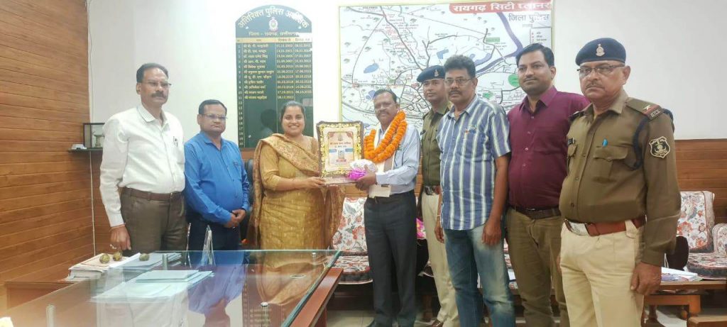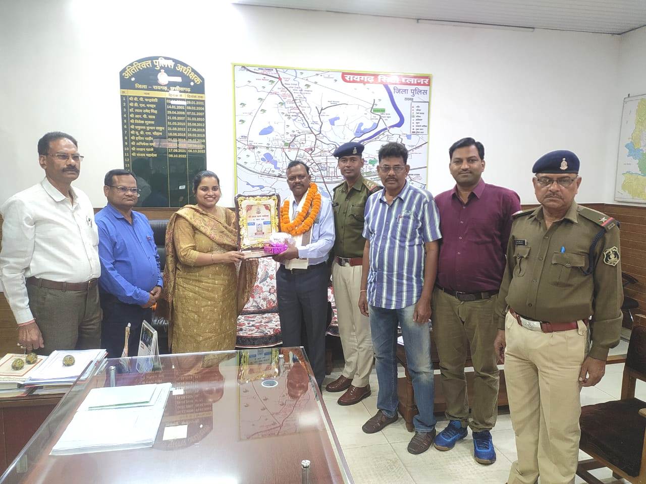 *रायगढ़* । जिला पुलिस बल रायगढ़ में पदस्थ प्रधान आरक्षक उदयनाथ राठिया अपनी अधिवर्षिकी आयु 62 वर्ष पूर्ण कर आज 29 फरवरी को जिला पुलिस से सेवानिवृत हुए हैं जिन्हें पुलिस अधीक्षक कार्यालय में डीएसपी (IUCAW) निकिता तिवारी द्वारा शाॅल, श्रीफल, प्रतीक चिन्ह भेंट कर स्वस्थ जीवन की शुभकामनाएं दिया गया । सेवा सम्मान कार्यक्रम में रक्षित निरीक्षक अमित सिंह, मुख्य लिपिक जे.पी. चेलकर, जिविशा प्रभारी डिलेश्वर साहू, एमटीओ राजकुमार राय, एएसआई लक्ष्मण प्रधान के साथ कार्यालयीन स्टाफ मौजूद थे ।