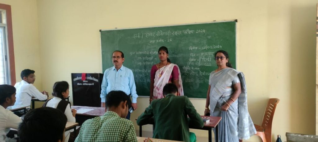 *बेमेतरा छ.ग.माध्यमिक शिक्षा मण्डल रायपुर द्वारा आयोजित हायर सेकेण्डरी परीक्षा 2024 में आज 01 मार्च 2024 को विषय हिन्दी की परीक्षा आयोजित हुई। जिले में कुल 74 केंद्रों में परीक्षा आयोजित हुई। कक्षा 12वी में कुल पंजीकृत 8909 विद्यार्थी है। आज कुल दर्ज 8729 में 8650 प्रविष्ट एवं 79 अनुपस्थित रहें। जिला प्रशासन बेमेतरा द्वारा गठित निरीक्षण दल द्वारा परीक्षा केन्द्रों का सघन निरीक्षण किया गया। श्री अरविंद मिश्रा जिला शिक्षा अधिकारी बेमेतरा द्वारा परीक्षा केन्द्रों सेजेस हिन्दी माध्यम बेमेतरा, ब्लाक बेमेतरा, जेवरा का निरीक्षण किया गया। एम.डी. डडसेना उप संचालक कृषि गाडाडीह, राजामोहगांव, देऊरगांव, बालक देवकर, कन्या देवकर परपोड़ी, श्री भावेश सिंह एस.डी.ओ. पी.डब्लू.डी. द्वारा परीक्षा केन्द्र अधियारखोर, बालक नवागढ़, कन्या नवागढ़ झाल. प्रतापपुर, गाडामोर का निरीक्षण किया गया।