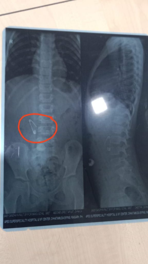 Big Breking jashpur:-8 वर्षीय बालिका आलपीन (पिन) निगल गई,पेट में फंसा पिन, जान आफत में,सरकारी मदद की आस में गरीब परिवार,रायगढ़ के निजी अस्पताल में उपचार जारी,प्रशासन से मदद की गुहार..!