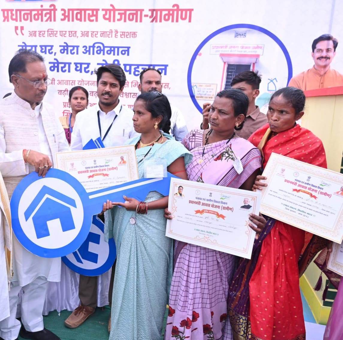 मुख्यमंत्री के हाथों बस्तर के ग्राम पंचायत बबूसेमरा की श्रीमती जुनी नाग और श्रीमती डोमीनी को मिला पक्का मकान