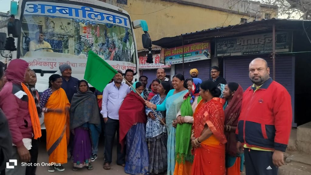 भगवान श्री राम के दर्शन को निकले जशपुर से 24 श्रद्धालु : जशपुर विधायक श्रीमती रायमुनी भगत ने हरा झंडा दिखा श्रद्धालुओं को किया अयोध्या रवाना