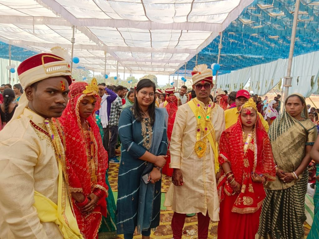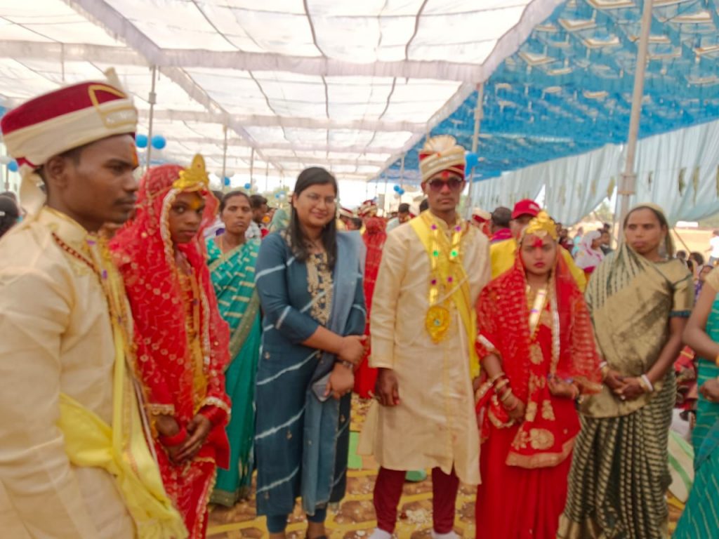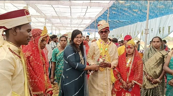 सुखमय जीवन की कामना करते है। फिजूल खर्च से बचने का यह एक अच्छा उदाहरण है, इस कार्यक्रम को देख कर अन्य लोगों को भी सीख मिलेगी। श्रीमती शांता साय ने कहा कि राज्य शासन द्वारा मुख्यमंत्री कन्या विवाह योजना में शामिल वर-वधू को कन्यादान सबसे बड़ा महादान होता है, योजना के अंतर्गत संबंधित बालिकाओं के विवाह के लिए राशि 50000 रूपये का प्रावधान है, इसके साथ ही राशि में से प्रत्येक जोड़ों के लिए राशि 21000 रूपये का डीबीटी के माध्यम से उनके बैंक खाते में एवं शेष राशि का उपयोग विवाह सामग्री, उपहार सामग्री एवं अन्य व्यवस्था किया जाता है।