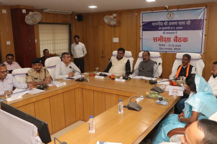 उप मुख्यमंत्री श्री अरुण साव ने बैठक में कहा कि बदलते समय के अनुरूप जिले में विकास कार्यों को गति देने के लिए सभी अधिकारी नई सोच के साथ कार्य करें। कार्य को पूर्ण करने के लिए विस्तृत कार्ययोजना तैयार कर दक्षता के साथ टीम के रूप में कार्य करें। उन्होंने कहा कि अधिकारी-कर्मचारी हमेशा उत्साह एवं ऊर्जा के साथ कार्य करें। कार्यालयों में समस्याओं को बढ़ने नहीं दें, समस्याओं का शीघ्रता से समाधान करें।