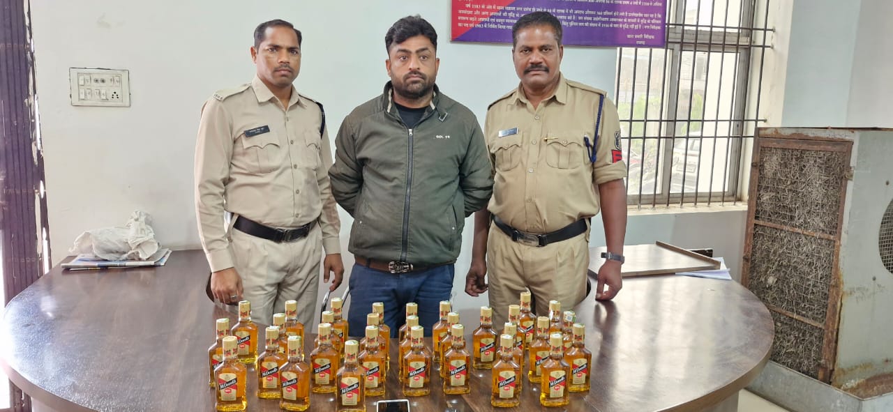 *19 मार्च, रायगढ़* । जिले में अवैध रूप से शराब विक्रय करने वालों पर मुखबीर लगाकर लगातार कार्यवाही किया जा रहा है । इसी क्रम में आज शाम थाना प्रभारी कोतवाली निरीक्षक सुखनंदन पटेल के नेतृत्व में कोतवाली पुलिस की टीम द्वारा मुखबीर सूचना पर अवैध ब्रिकी के लिये शराब परिवहन कर रहे आरोपित *हितेश परमार पिता हरीश परमार उम्र 36 वर्ष सा० षडंगी कालोनी सर्किट हाउस थाना कोतवाली जिला रायगढ़* को रामपुर सर्किट हाउस मेन रोड़ के पास पकड़ी । आरोपी के पास से 30 नग Mcdowells No - 1 अंग्रेजी शराब बरामद हुआ जिसकी विधिवत जप्ती की गई है । आरोपी के विरूद्ध थाना कोतवाली में आबकारी एक्ट के तहत कार्रवाई किया गया है । शराब रेड कार्रवाई में प्रधान आरक्षक जगदीश नायक, आरक्षक जगमोहन ओग्रे, उत्तम सारथी शामिल थे ।