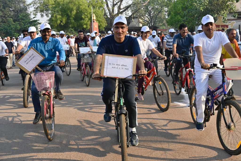 वही एसपी ने लिखा न नशे से ना नोट से, क़िस्मत बदलेगी वोट से स्लोगन के साथ सायकल रैली में शामिल हुए