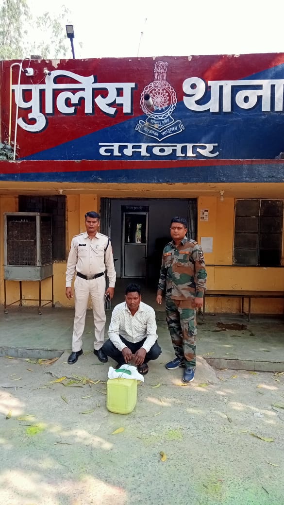 ● *ग्राम कुंजेमुरा में तमनार पुलिस की शराब रेड कार्यवाही, 20 लीटर अवैध महुआ शराब के साथ आरोपी गिरफ्तार*……