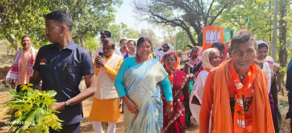 जनसंपर्क कार्यक्रम के दौरान बगीचा क्षेत्र पहुंची जशपुर विधायक श्रीमती रायमुनी भगत,केंद्र और राज्य में भाजपा सरकार की उपलब्धि बता लाभार्थियों से की मुलाकात