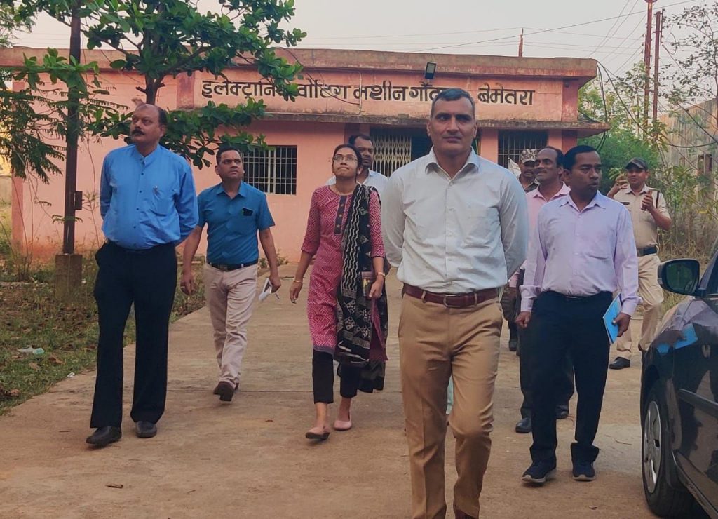 *बेमेतरा कलेक्टर एवं जिला निर्वाचन अधिकारी श्री रणबीर शर्मा ने आगामी लोकसभा चुनाव 2024 के मद्देनजर संयुक्त कार्यालय एवं कलेक्ट्रेट परिसर में स्थित ईवीएम, वीवीपैट, वेयर हाउस के रखरखाव की सुरक्षा व्यवस्था देखी इस दौरान उन्होंने निर्वाचन सामग्री रखरखाव के अवश्यक दिशा निर्देश दिये। उन्होंने वेयर हाउस स्थित इलेक्ट्रॉनिक वोटिंग मशीन के रखरखाव, बैलट यूनिट, कंट्रोल यूनिट, व्हीव्हीपीएटी मशीन, सीसीटीवी कैमरे, अग्नि से सुरक्षा सहित परिसर की सुरक्षा के दृष्टिकोण को देखते हुए संबंधित अधिकारियों को आवश्यक दिशा निर्देश दिये | इसके अलावा उन्होंने कलेक्टरेट परिसर का निरीक्षण किया और आगामी लोकसभा निर्वाचन को देखते हुए वाहन पार्किंग और सुरक्षा हेतु सभी शासकीय कर्मचारी का पास बनाकर व्यवस्थित तरिके से पार्किंग करने और साफ सफाई के निर्देश दिए | उक्त निरीक्षण के दौरान उप जिला निर्वाचन अधिकारी गुड्डू लाल जगत, संयुक्त कलेक्टर अंकिता गर्ग, डिप्टी कलेक्टर दिव्या पोटाई एवं अन्य अधिकारी गण उपस्थित थे।