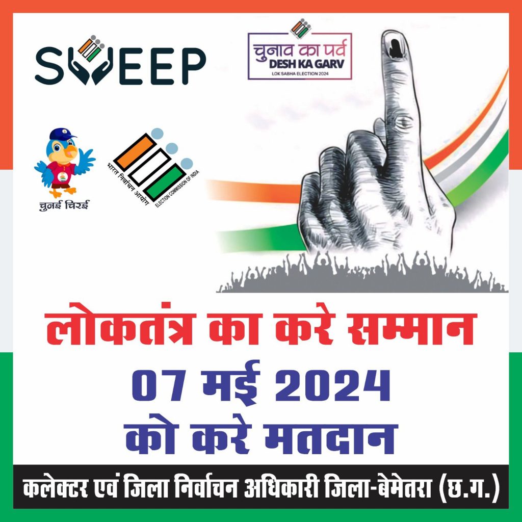 *बेमेतरा * कलेक्टर एवं जिला निर्वाचन अधिकारी श्री रणबीर शर्मा के मार्गदर्शन में लोकसभा आम निर्वाचन 2024 के मद्देनजर जिले में स्वीप कार्यक्रम के अंतर्गत विभिन्न मतदाता जागरूकता कार्यक्रम गतिविधियों का आयोजन किया जा रहा है। और जिले में शत प्रतिशत मतदान सुनिश्चित करने के लिए मतदाताओं को अपने मताधिकार का उपयोग करने जागरूक किया जा रहा है। जिला प्रशासन सभी नागरिकों तक मतदान के प्रतिशत को बढ़ाने के लिए मतदाता जागरूकता के तहत एक अनूठी पहल की है। जिला प्रशासन ने मतदाता जागरूकता स्लोगन संकल्प एक अभियान शत प्रतिशत हो मतदान एवं 7 मई 2024 मतदान अवश्य करे सूचना युक्त सील बनाकर सभी शासकीय जिला अस्पताल, सामुदायिक स्वास्थ्य केंद्र, मेडिकल स्टोर, रेस्टोरेंट एवं जनरल स्टोर से जनरेट बिल में मतदाता जागरूकता संबंधी स्लोगन युक्त सील लगाकर लोगों को मतदान के लिए जागरूक किया जा रहा है । इससे मेडिकल पर्ची एवं दुकान से प्राप्त बिल में जाने से लोगों को आसानी से मताधिकार की जानकारी मिलेगी | इसके अलावा लोगों को मतदान जागरूकता हेतु सभी अलग अलग साइज में बैनर पोस्टर बनवाकर सभी राशन दुकानों में लगाने, सभी जनपद पंचायत और नगरीय निकाय अंतर्गत मुख्य चौक चौराहा भीड़ वाले स्थान में, सभी बैंकों में और सभी पेट्रोल पंप में अनिवार्य रूप से लगवाने हेतु निर्देशित किया गया है | साथ ही मतदाता मतदान दिवस में वोटिंग करने के लिए जागरूक हो रहे है। जिले में संचालित स्वीप गतिविधियों के तहत रबर स्टाम्प सील के माध्यम से जन जन तक शत प्रतिशत मतदान का संदेश निरन्तर दिया जायेगा । मतदाताओं को जागरूक करने के अभियान में शासकीय संस्थानों सहित निजी संस्थान भी बढ़ चढ़कर भाग ले रहे है। इसके तहत अस्पताल के ओपीडी पर्ची में, निजी स्टेशनरी मार्ट, रेस्टोरेंट, मेडिकल स्टोर जैसे संस्थानों में ग्राहकों को दिए जाने वाले बिल में मतदाता जागरूकता का सील लगाया जा रहा है। स्वास्थ्य केंद्रों के ओपीडी पर्ची में सील लगाया जायेगा जिसके माध्यम से भी जागरूकता बढ़ेगी | बेमेतरा लोकसभा संसदीय क्षेत्र के लिए मतदान की तारीख 7 मई 2024 भी अंकित किया गया है। जिससे लोगों को अपने क्षेत्र में मतदान दिवस की जानकारी आसानी से मिल जाएगी |