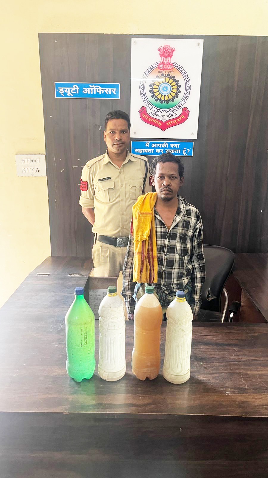 *09 अप्रैल रायगढ़* । पुलिस अधीक्षक रायगढ़ के दिशा निर्देशन पर अवैध शराब की बिक्री पर अंकुश लगाने चक्रधरनगर पुलिस की कार्रवाई लगातार जारी है । आज दिनांक 09.04.2024 के दोपहर थाना प्रभारी चक्रधरनगर निरीक्षक प्रशांत राव को मुखबिर से ग्राम सम्बलपुरी में अवैध शराब बिक्री की सूचना मिला । सूचना पर थाना प्रभारी द्वारा थाने से स्टाफ कार्रवाई के लिए रवाना किया । चक्रधरनगर पुलिस की टीम द्वारा ग्राम सम्बलपुरी में अमित होटल के पीछे बाडी में *आरोपी परमानंद भोय पिता टुनु राम भोय उम्र 42 वर्ष साकिन सम्बलपुरी थाना चक्रधरनगर, जिला रायगढ़* को अवैध रूप से शराब बेचने दो लीटर वाले तीन प्लास्टिक बाटल में फुल भरा कुल 08 लीटर महुआ शराब कीमती 800/- रूपये के साथ पकड़ा गया । आरोपी परमानंद भोय पर थाना चक्रधरनगर में धारा 34(2),59(क)आबकारी एक्ट के तहत कार्रवाई किया गया है । शराब रेड कार्रवाई में प्रधान आरक्षक रवि साय, आरक्षक अभय यादव, चन्द्र कुमार बंजारे और महिला आरक्षक अनिता बेक शामिल थे ।