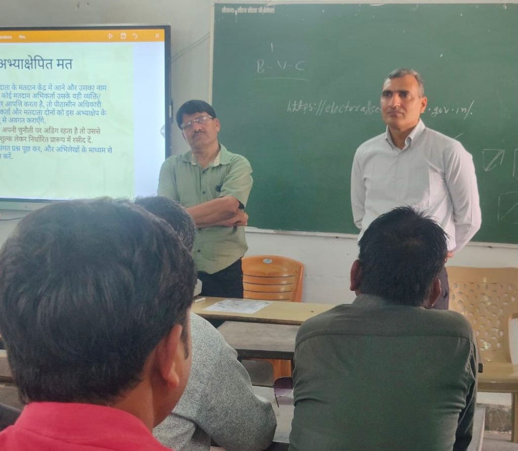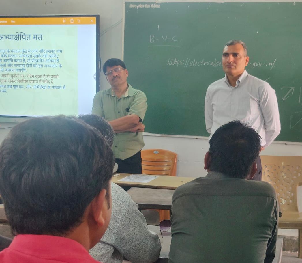 कलेक्टर एवं जिला निर्वाचन अधिकारी श्री रणबीर शर्मा ने पहले दिन और आज प्रशिक्षण केन्द्र पहुँचकर दिए जा रहे प्रशिक्षण की गतिविधियाँ देखी ।ज़रूरी दिशा-निर्देश दिये।
