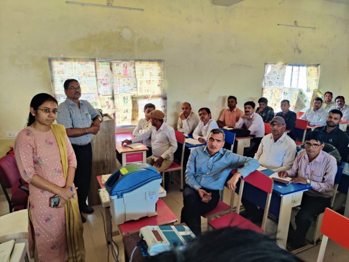 इसी क्रम में कलेक्टर एवं जिला निर्वाचन अधिकारी श्री रणबीर शर्मा के आदेशानुसार सीईओ जिला पंचायत के मार्गदर्शन में नवागढ़ विधानसभा एवं जनपद पंचायत बेमेतरा के ग्रामपंचायत मोढ़े सारंगपुर चरगवां मे जनपद पंचायत सीईओ पी एल धुर्वे के नेत्तृत्व मे मतदाता जागरूकता अभियान चलाया गया, जिसमे ग्राम के वरिष्ठ एवं नये मतदाताओं का नारियल एवं फूल चावल देकर सम्मानित किया गया | मतदाताओं को शपथ दिलाया गया फिर घर घर भ्रमण कर पीला चावल फूल देकर 7 मई को मतदान केंद्रों मे जाकर अपना मतदान करने को आमंत्रित किया गया | उक्त कार्यक्रम में एडीशनल सीईओ भरत बंजारे विक्रम सिंह पी ओ संदीप वारे समन्यवक घनश्याम सिंहा विकास राजपूत पंचायत निरीक्षक कोमल चंद्रवंशी दिनेश साहू सहित जनपद पंचायत के अधिकारी कर्मचारी और बड़ी संख्या में सचिव गण व बिहान के महिला समूह के सदस्य गण उपस्थित थे