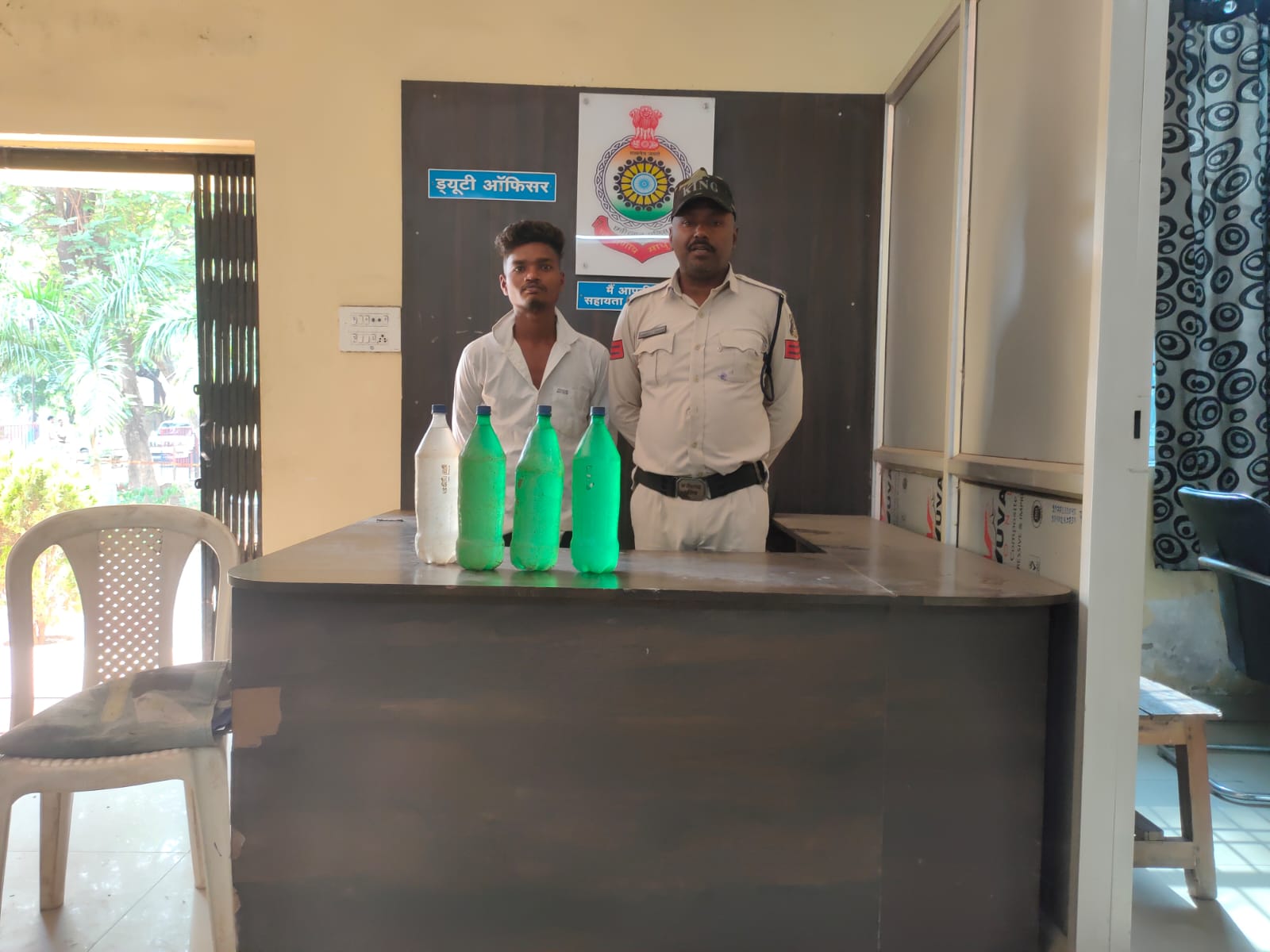 *20 अप्रैल रायगढ़* । कल दिनांक 19/04/2024 को थाना प्रभारी चक्रधरनगर निरीक्षक प्रशांत राव आहेर द्वारा वारंट पतासाजी के लिए थाने के स्टाफ को ग्राम रेगडा, लामीदहरा गोर्वधपुर की ओर रवाना किया गया था । इसी दरम्यान ग्राम रेगडा में चक्रधरनगर पुलिस को मुखबीर से जुबानी सूचना मिला कि ग्राम रेगडा का सुरज तिग्गा रेगडा तथा आसपास में अवैध रूप से महुआ करता है और आज भी बिक्री के लिए महुआ शराब रखा है । सूचना पर स्टाफ द्वारा मुखबीर के बताये स्थान पर गवाहों के साथ जाकर घेराबंदी कर एक व्यक्ति संदिग्ध युवक को महुआ शराब ब्रिकी करते पकड़े जिसे नाम पता पूछने पर अपना नाम- *सुरज तिग्गा पिता दशरथ तिग्गा उम्र 24 वर्ष साकिन छोटे रेगडा सलीहापारा थाना चक्रधरनगर* का रहने वाला बताया जिसके कब्जे से पुलिस ने दो दो लीटर क्षमता वाली प्लास्टिक 4 बाटल में पूरा भरा *कुल 08 लीटर महुआ शराब किमती ₹1,600/-* का जप्त किया गया । आरोपी सूरज तिग्गा के कृत्य पर थाना चक्रधरनगर में अपराध धारा 34(2), 59(क) आबकारी एक्ट के तहत कार्रवाई की गई है । शराब रेड कार्यवाही में प्रधान आरक्षक सुमन चौहान एवं हमराह स्टाफ शामिल थे ।