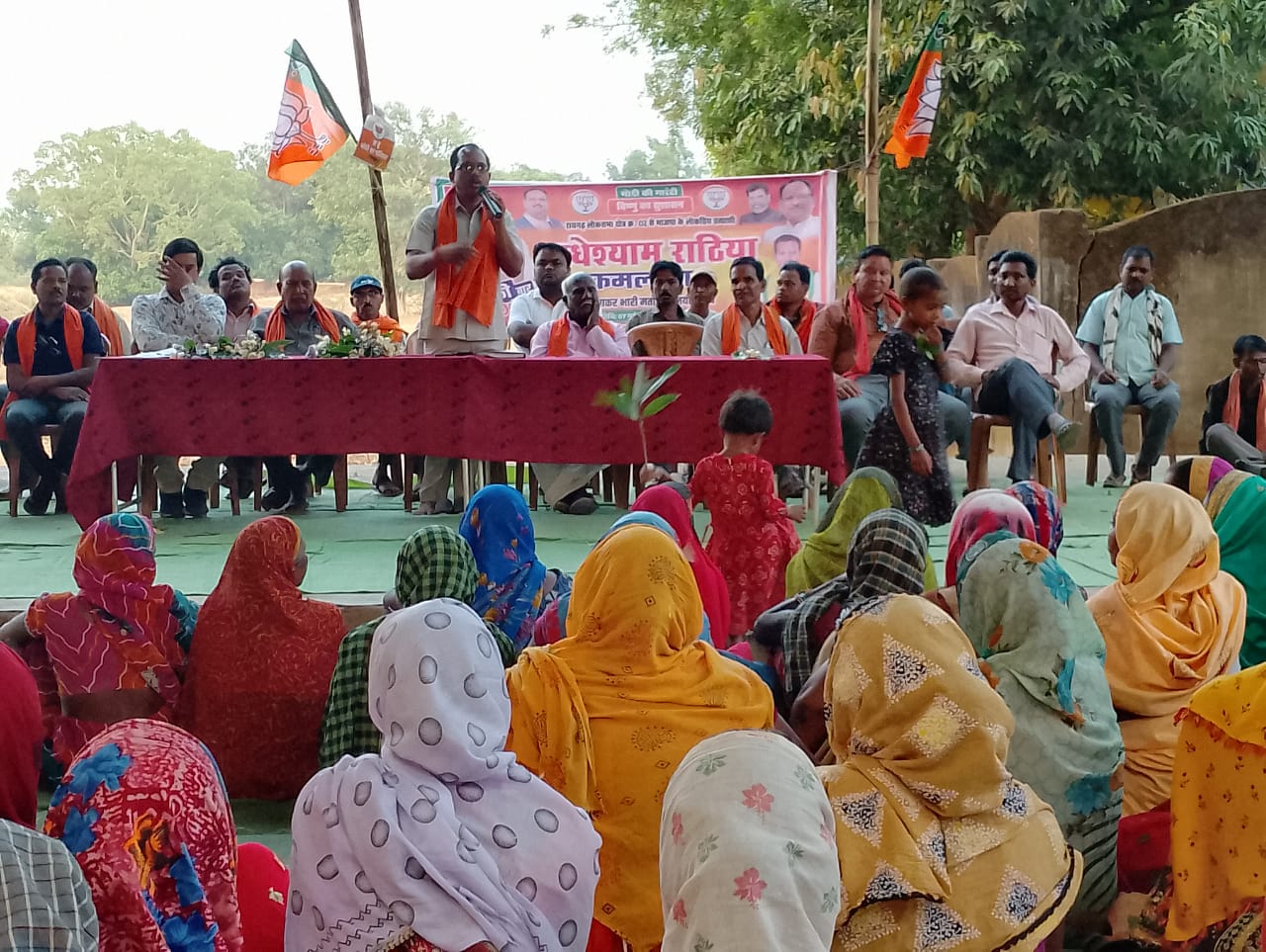 लोकसभा प्रत्याशी राधेश्याम राठिया के पक्ष में धुँवाधार प्रचार कर रहे सालिक साय