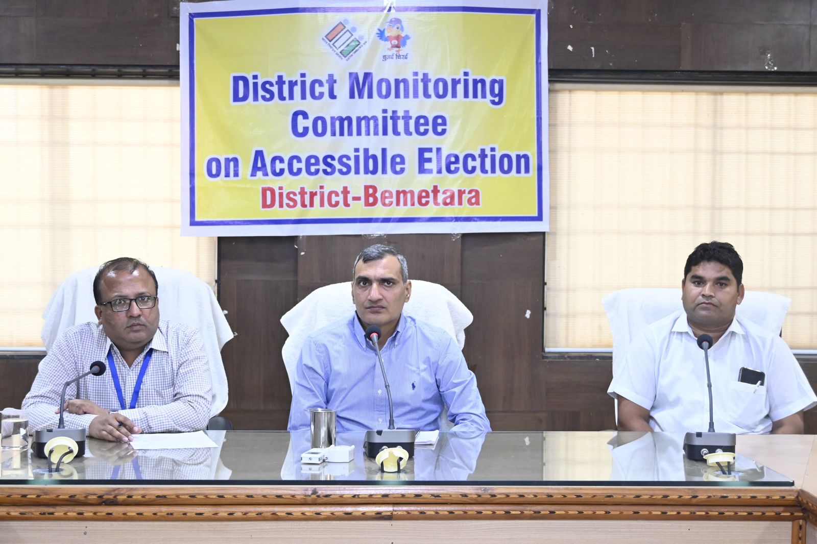 बेमेतरा लोकसभा निर्वाचन-2024 संसदीय क्षेत्र 07- दुर्ग अन्तर्गत ज़िले की तीनों विधानसभा क्षेत्र 68 -साजा,69- बेमेतरा व 70 – नवागढ़ मतदान होगा। मतदान 7 मई 2024 को सबेरे 7 बजे से शाम 6 बजे तक होगा। ज़िले में निर्वाचन में शत- प्रतिशत मतदान को लेकर कलेक्टर एवं ज़िला निर्वाचन अधिकारी श्री रणबीर शर्मा ने आज यहां कलेक्ट्रेट के दृष्टि सभाकक्ष में स्थानीय व्यापारी संघ के सदस्यों, व्यापारियों, विभिन्न प्रतिष्ठित प्रतिष्ठान मालिकों आदि की बैठक ली।