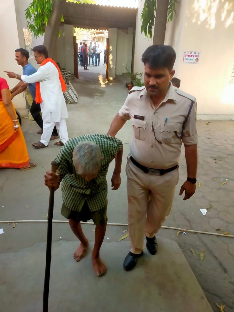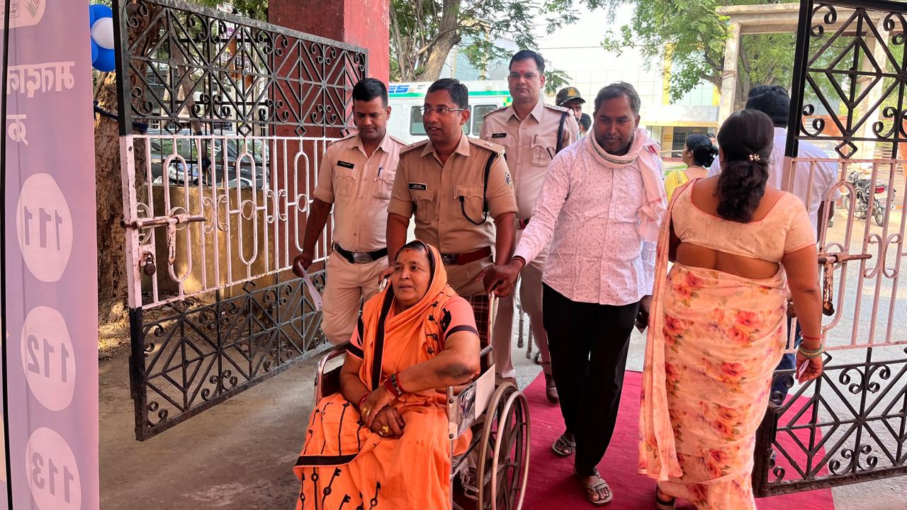 वरिष्ठ नागरिकों और अशक्तों को मतदान में पुलिस जवानों ने की मदद, एडिशनल एसपी ने सीनियर सिटीजन को व्हील चेयर पर बिठाकर पहुंचाया बूथ तक….