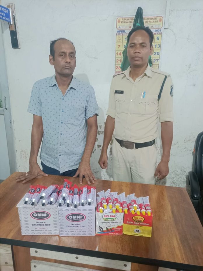 ● पुलिस को छापेमारी में साइकिल पंचर बनाने वाले दुकान पर मिला था सोल्यूशन की खेप….