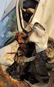 बारात से वापस आती कार पेड़ से टकराई , 4 घायलों में 3 को किया रिफर