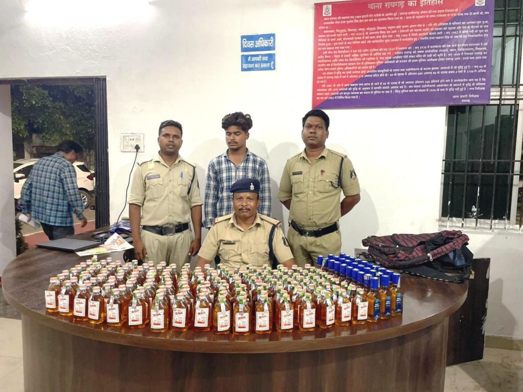 06 जून रायगढ़ । पुलिस अधीक्षक श्री दिव्यांग कुमार पटेल द्वारा अवैध शराब पर अंकुश लगाने के दिये निर्देशन पर थाना प्रभारी कोतवाली निरीक्षक सुखनंदन पटेल के नेतृत्व में कल शाम कोतवाली पुलिस की टीम द्वारा अवैध शराब पर बड़ी कार्यवाही किया गया है । थाना प्रभारी कोतवाली को मुखबिर से सूचना मिली थी कि बिना नंबर एक काले रंग के होंडा स्कूटी में एक युवक भारी मात्रा में शराब रखकर लाखा से उर्दना की ओर जा रहा है । सूचना पर थाना प्रभारी द्वारा तत्काल स्टाफ कार्यवाही के लिए रवाना किया गया । कोतवाली पुलिस टीम द्वारा मेन पर लाखा डेम नहर के पास घेराबंदी कर संदेही युवक को पकड़ा गया । संदेही अपना नाम देवब्रत प्रधान पिता व्योमेश प्रधान उम्र 18 वर्ष साकिन बेलादूला श्रीराम कालोनी रायगढ, हाल मुकाम मोदीनगर बोईरदादर थाना चकधरनगर जिला रायगढ़ बताया जिसके रखे तीन बैग में 162 पाव (180ml) गोवा स्पेशल व्हिस्की, 30 पाव पार्टी स्पेशल अंग्रेजी शराब कुल 34.560 ब्लक लीटर शराब कीमती ₹27,360 मिला । युवक देवब्रत प्रधान द्वारा शराब परिवहन के संबंध में कोई समाधानकारक वाब और कागजात पेश नहीं कर पाने से कोतवाली पुलिस टीम द्वारा आरोपी देवब्रत प्रधान से अवैध शराब और एक बिना नंबर काला रंग होंडा एक्टिवा स्कूटी कीमती ₹90,000 रुपए कुल ₹1,17,360 की अपराध में जप्ती कर आरोपित देवव्रत चौहान पर थाना कोतवाली में अप.क्र. 337/2024 धारा 34(2),59(क)आबकारी एक्ट के तहत कार्यवाही किया गया है । शराब रेड कार्यवाही में सहायक उप निरीक्षक गौतम सिंह ठाकुर, आरक्षक उत्तम सारथी और मनोज पटनायक शामिल थे ।