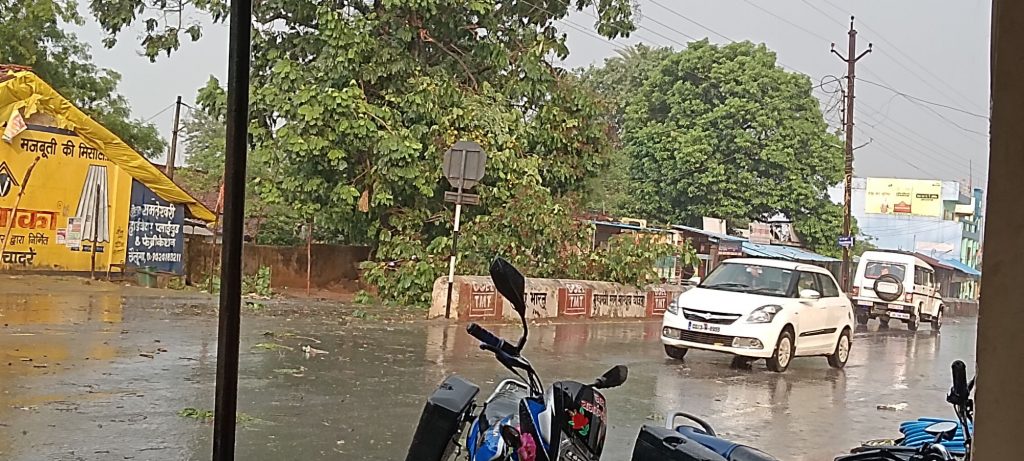 लैलूंगा/ नगर के दिल कहे जाने वाले जनपद पंचायत ब्लाक आफ़िश गांधी चौक में तेज हवा और तूफान से 2 पेड़ टूट कर गिर गया । जिसके कारण बिजली की खम्भा भी टूट कर गिर गया जिसमें 11000 बोल्टेज सप्लाई रहती है । अचानक हवा के चलने से लोगो मे अफरा तफरी मच गया। लोग भागते नजर आए जान माल की कोई नुकसान नही हुवा पर ठेला संचालित करने वाले के ठेले में बिजली खंभा गिर गया है जिसकी सूचना बिजली विभाग को दे दी गई है। फील हॉल समाचार लिखे जाने तक रोड़ में।आवागमन बाधित रहा