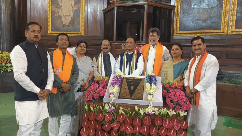 नई दिल्ली में आयोजित संसदीय दल की बैठक में आज सांसद देवेंद्र मुख्यमंत्री विष्णु देव साय और छत्तीसगढ़ की सभी निर्वाचित सांसदों के साथ शामिल हुए जहां पार्टी के आला नेताओं से मिलकर उनको बधाई भी दी।