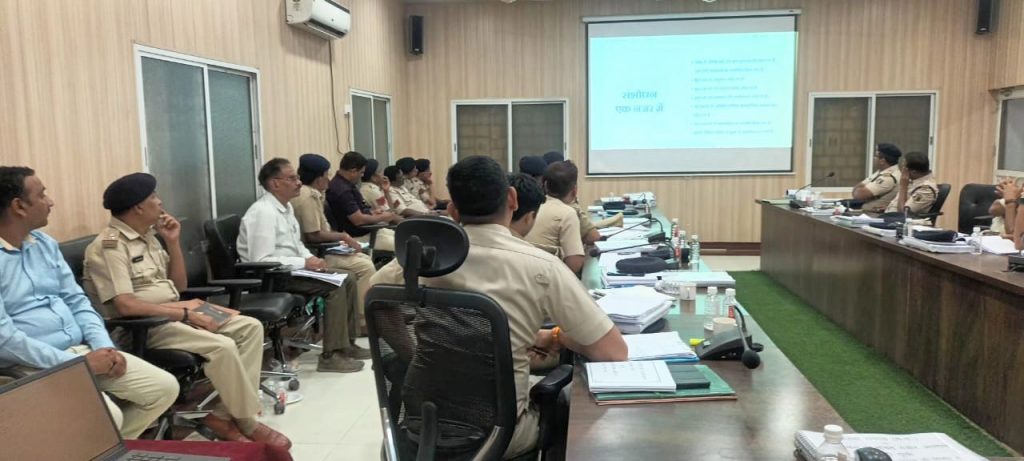 *10 जून रायगढ़* । पुलिस अधीक्षक श्री दिव्यांग कुमार पटेल द्वारा आज सुबह पुलिस कंट्रोल रूम में जिले के राजपत्रित पुलिस अधिकारियों तथा थाना, चौकी व इकाई के विभिन्न शाखा प्रभारी की अपराध समीक्षा बैठक लिया गया । पुलिस अधीक्षक द्वारा एक-एक कर सभी थानों के पेंडिंग अपराध, शिकायत, गुम इंसान, मर्ग आदि की जानकारी लिये । पुलिस अधीक्षक द्वारा गत माह की तुलना में अपराधों के निकाल में कमी बताते हुए अपराधों, शिकायतों का शीघ्र निराकरण के निर्देश दिये । पुलिस अधीक्षक द्वारा गंभीर मामलों में थाना प्रभारी को विवेचना के संबंध में आवश्यक मार्गदर्शन दिया गया साथ ही उन अपराधों को अलग सूची तैयार कर प्रतिदिन प्रगति से अवगत से करने का निर्देश दिया गया तथा आने वाले दिनों में गुम इंसानों की अधिक से अधिक दस्तयाबी के लिए विशेष अभियान चलाने कहा गया । संपत्ति संबंधी अपराधों में कर्मी लाने लघु अधिनियम की कार्यवाही जारी रखने के निर्देश हैं । पुलिस अधीक्षक द्वारा समन/वारंट, बदमाशों तथा गुम संपत्ति के डाटा संधारण हेतु तैयार किये गये वेब पोर्टल “Digital Raigarh” की प्रगति देखे और प्रभारियों को त्रुटि रहित जानकारी अपलोड करने कहा गया । बैठक में सड़क दुर्घटनाओं की समीक्षा कर सड़क सुरक्षा बढ़ाने और यातायात नियमों के अनुपालन को सुनिश्चित करने के लिए विशेष अभियान चलाने का निर्देश दिया गया । बैठक में प्रोजेक्टर पर iRAD डेटाबेस से जिले के ब्लैक स्पॉटों की समीक्षा कर उन स्थानों पर आवश्यक सुधार कार्य कराने के निर्देश दिये तथा ओवर-स्पीडिंग, ड्रिंक एंड ड्राइव, बिना हेल्मेट पर लगातार कार्यवाही करने का निर्देश दिया गया है ।