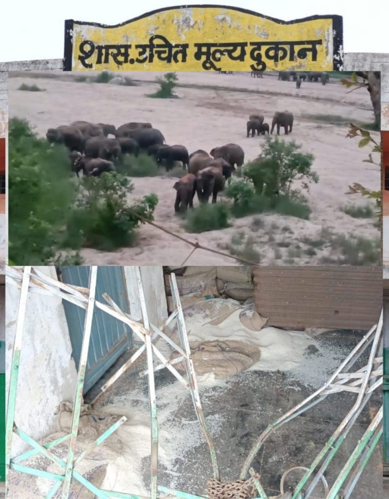 हांथीयो ने राशन दुकान पहुंचकर जमकर उत्पात मचाया