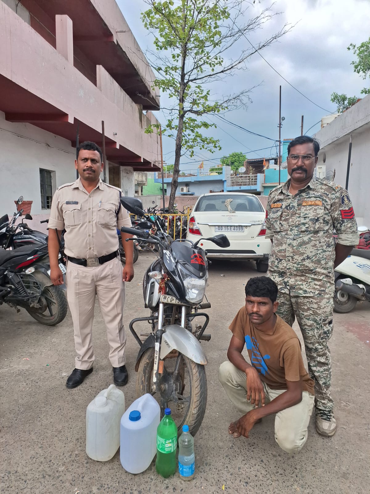 *20 जून, रायगढ़* । आज दिनांक 20/06/2024 को थाना प्रभारी जूटमिल निरीक्षक मोहन भारद्वाज को मुखबिर से सूचना मिली कि एक व्यक्ति ग्लैमर मोटर सायकल पर महुआ शराब लेकर रायगढ़ से पुसौर की ओर अवैध बिक्री के लिए लेकर जा रहा है । थाना प्रभारी के निर्देशन पर तत्काल जूटमिल पुलिस पेट्रोलिंग द्वारा छातामुड़ा चौक के पास घेराबंदी कर मुखबिर द्वारा बताए ग्लैमर मोटरसाइकिल के चालक को पकड़ा गया । पूछताछ पर मोटर सायकल के चालक अपना नाम *गजानंद सारथी पिता हजारू सारथी उम्र 38 साल निवासी धनागर थाना कोतरारोड़* का रहने वाला बताया जिसके पास से 10 लीटर क्षमता वाले दो जरकिन तथा 02 लीटर वाली कोल्ड ड्रिंक और 01 लीटर वाले पानी बॉटल में भरा हुआ कुल 23 लीटर महुआ शराब बरामद हुआ । आरोपी गजानंद सारथी से अवैध *23 लीटर महुआ शराब कीमती ₹2300 और परिवहन में प्रयुक्त मोटरसाइकिल ग्लैमर सीजी 13 एडब्लू 9249 की जब्ती* की गई है । आरोपी के कृत्य पर थाना जूटमिल में अपराध क्रमांक 282/2024 धारा 34(2), 59(क) आबकारी एक्ट के तहत कार्यवाही किया गया है । शराब रेट कार्यवाही में प्रधान आरक्षक क्लोस्टिका खरे, रामनाथ बनर्जी तथा टाउन पेट्रोलिंग के आरक्षक लखेश्वर पुरसेठ, शशि भूषण साहू शामिल थे ।