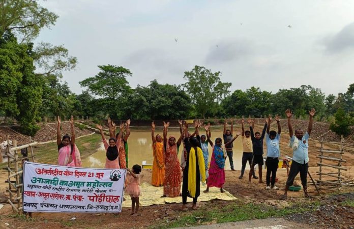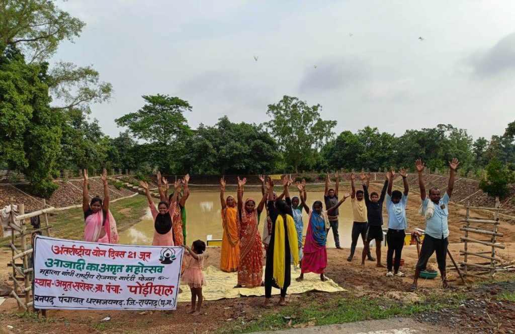 अंतर्राष्ट्रीय योग दिवस के अवसर पर महात्मा गांधी नरेगा योजनांतर्गत जिले के 07 विकासखण्डों में कुल 101 अमृत सरोवर स्थलों में योग शिविर का आयोजन किया जाकर योगा अभ्यास करवाया गया। जिसमें विकासखण्ड धरमजयगढ़ में 19 अमृत सरोवर, घरघोड़ा में-12, खरसिया में-27, लैलूंगा में-16, पुसौर में-09, रायगढ़ में-11 एवं विकासखण्ड तमनार में-07 अमृत सरोवर अमृत सरोवर स्थलों में योग दिवस का आयोजन किया गया है। इसके अलावा ग्राम पंचायत स्तर पर योग दिवस का आयोजन पंचायत विभाग द्वारा कराया गया था।