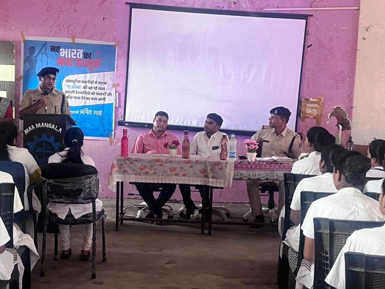 *27 जून रायगढ़* । 01 जुलाई से लागू हो रहे नवीन कानून संहिताओं के संबंध में पूरे देश में प्रचार-प्रसार किया जा रहा है । रायगढ़ जिले में भी प्रशासन व पुलिस नवीन कानून संहिता का प्रचार-प्रसार कर रही है । इसी क्रम में आज नगर पुलिस अधीक्षक श्री आकाश शुक्ला द्वारा मां मंगला नर्सिंग कॉलेज में छात्राओं और शिक्षकों को नवीन कानून की जानकारी दी गई।