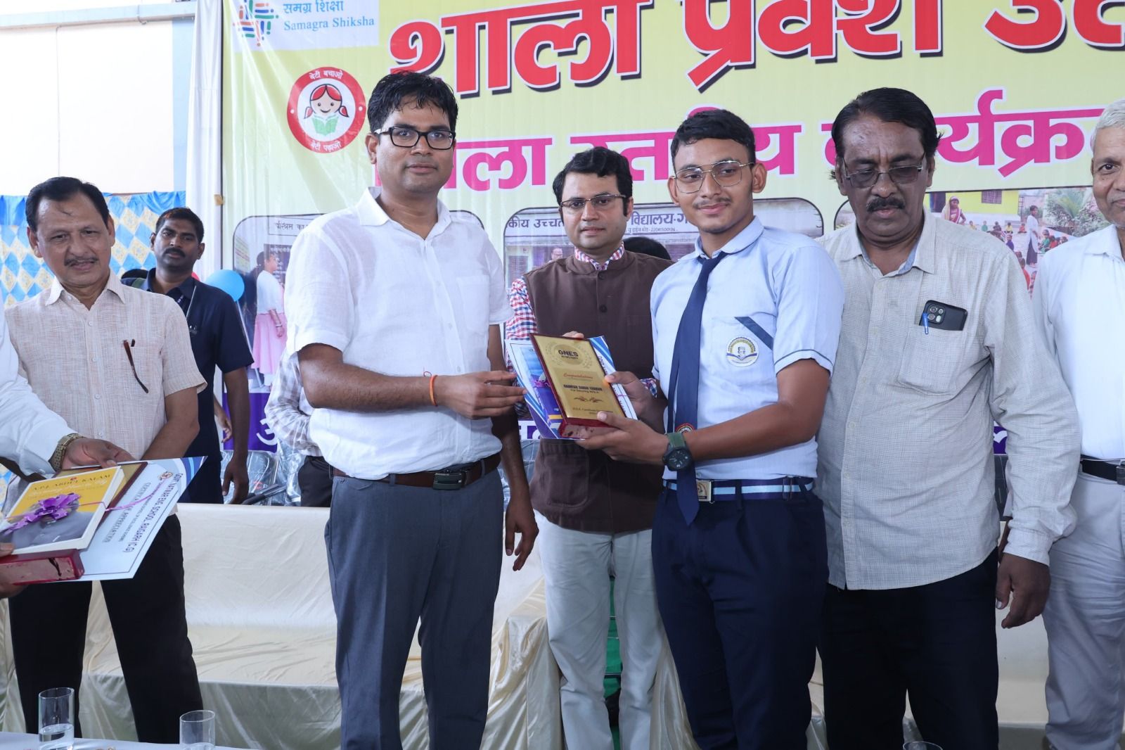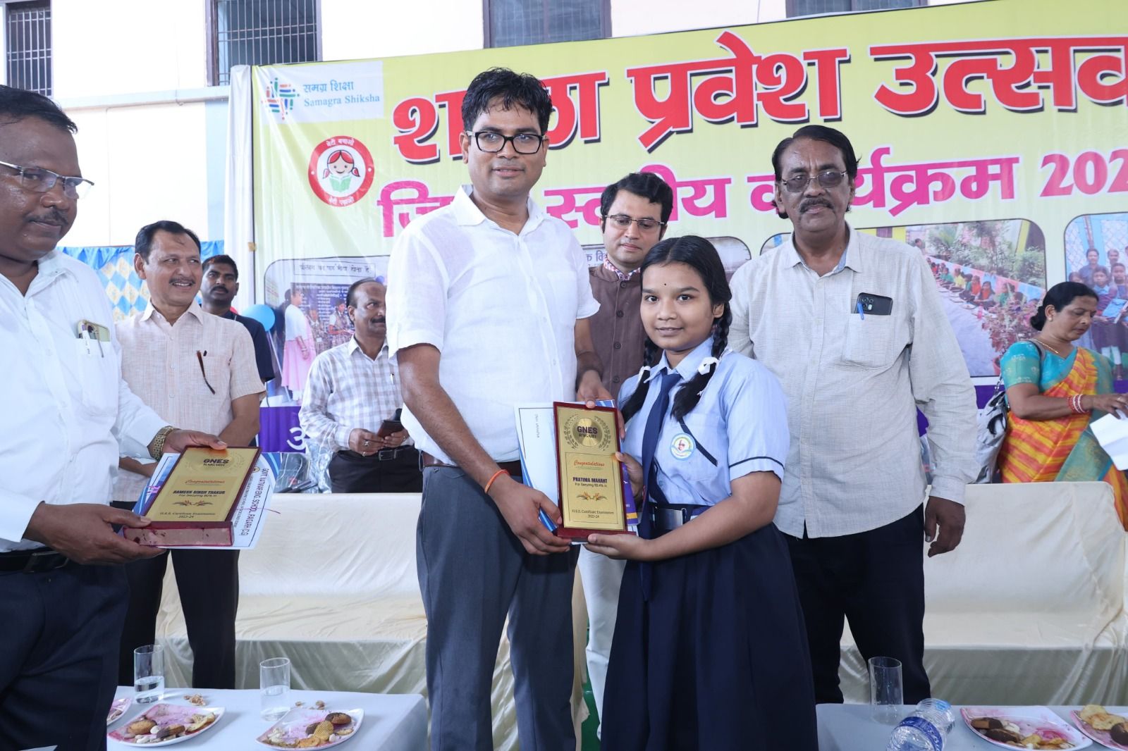 जिला स्तरीय शाला प्रवेशोत्सव के अवसर पर प्रतिभाशाली बच्चों को सर्टिफि केट, मोमेन्टो एवं बुक प्रदान कर सम्मानित किया गया। जिसमें प्रतिमा महंत, रमेश सिंग, खुशवेन्द्र टंडन, तेजस्वनी निषाद, रौनक चौधरी, निशि मिश्रा, गरिमा पटेल, तौफेल अंसारी, राखी पटेल एवं रितिका महंत शामिल थे।