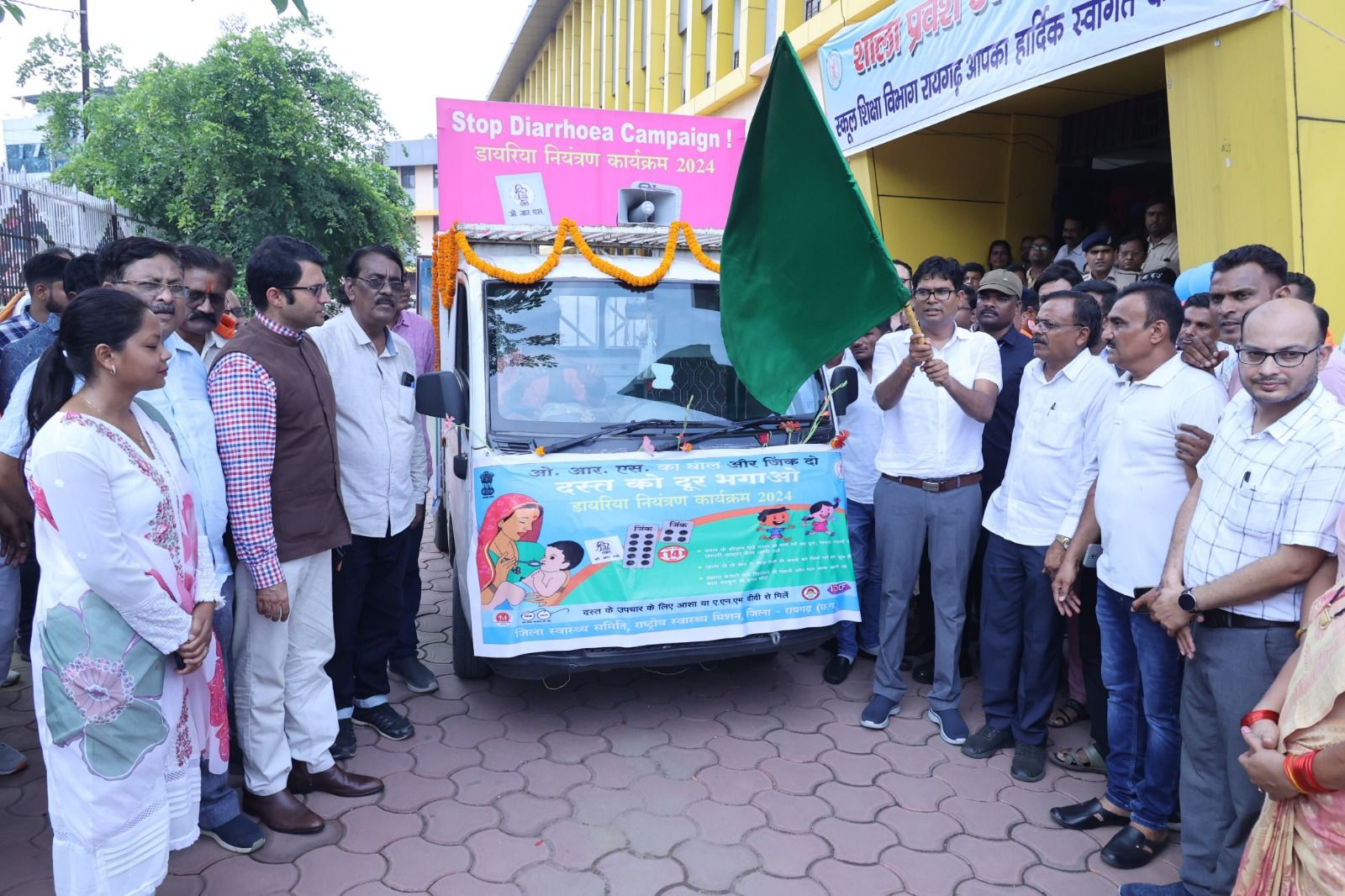 जिला स्तरीय शाला प्रवेश उत्सव कार्यक्रम में डायरिया नियंत्रण कार्यक्रम का आयोजन किया गया। जिसमें बच्चों को डायरिया नियंत्रण के विधियों की जानकारी दी गई। इस दौरान विभाग द्वारा ओआरएस घोल निर्माण की जानकारी के साथ ही हैंड वॉश करने के तरीके का प्रदर्शन किया गया, ताकि डायरिया को नियंत्रण कर सके। इस दौरान वित्त मंत्री श्री ओ.पी.चौधरी ने स्टॉप डायरिया कैंपेन वैन को हरी झंडी दिखाकर रवाना किया।