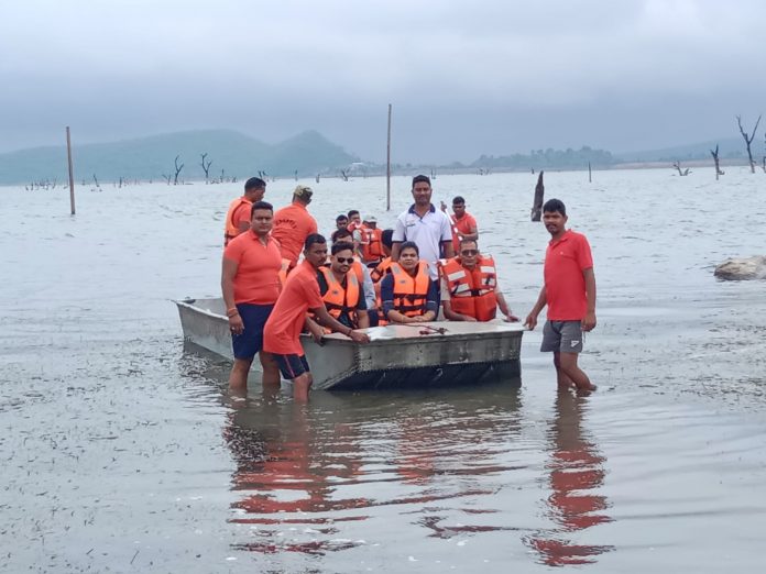 रायगढ़, 29 जून 2024/ कलेक्टर श्री कार्तिकेया गोयल के निर्देशन में मानसून-2024 में प्राकृतिक आपदा से बचाव एवं राहत व्यवस्था के संंबंध में बाढ़ आपदा से निपटने हेतु आज प्रात: 7 बजे से केलो डेम लाखा, रायगढ़ में प्रारंभिक प्रशिक्षण किया गया। जिसमें नगर सेना रायगढ़ की टीम के लगभग 30 जवानों द्वारा उनके पास उपलब्ध 2 मोटर वोट टेस्ट ड्राईव कर बाढ़ आपदा से निपटने के लिए डेमो देकर उपस्थित अधिकारी-कर्मचारी एवं जनसामान्य को बताया गया। प्रारंभिक अभ्यास में बाढ़ की स्थिति निर्मित होने पर सबसे पहले क्या करना चाहिए के संबंध में डेमो देकर जानकारी दी गई।